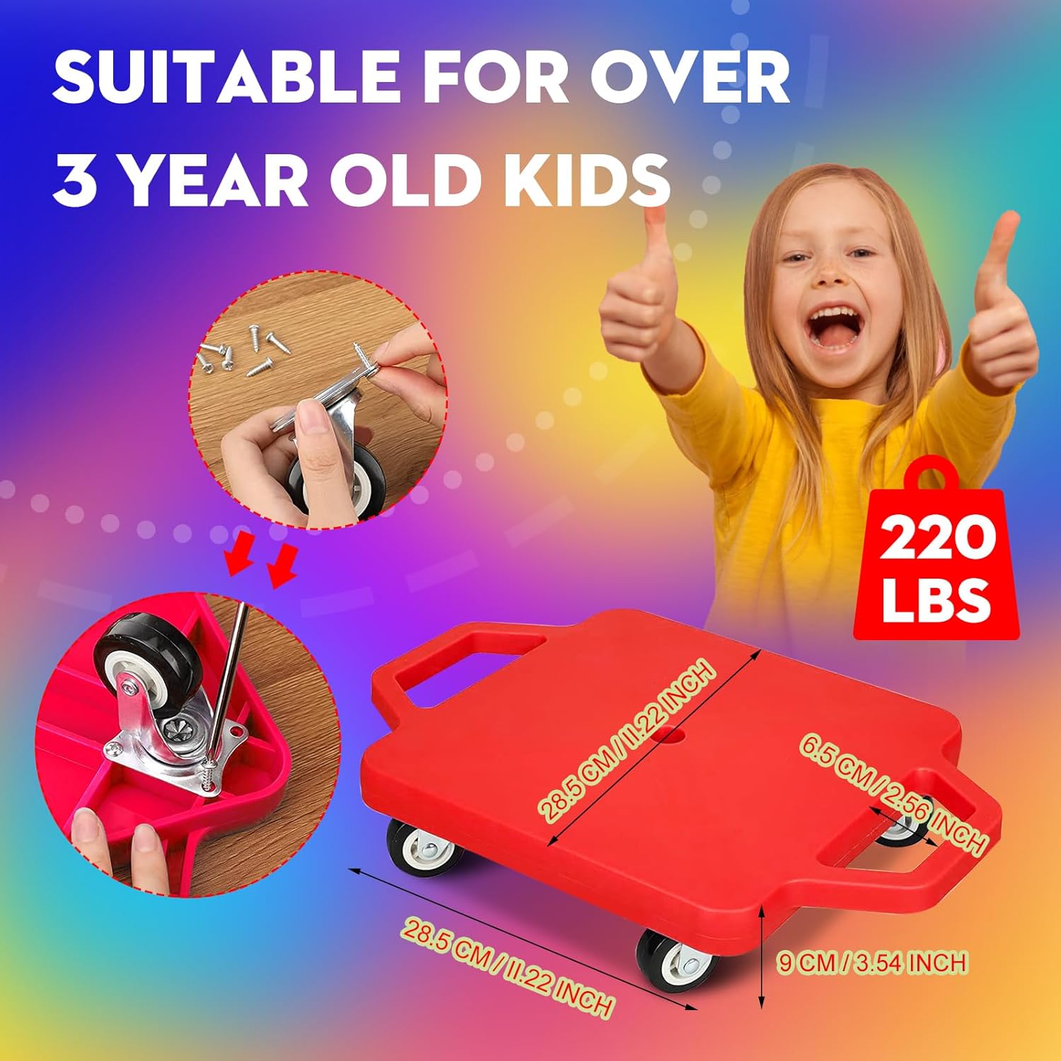 Scooter Board Set:You will receive 12 pcs scooter boards with handles and plastic casters and 2 screwdrivers for assembly Enough for you to use this group of scooters provides a lot of fun at home or school, also allows children to have more interaction, and is also a fun toy for family activities