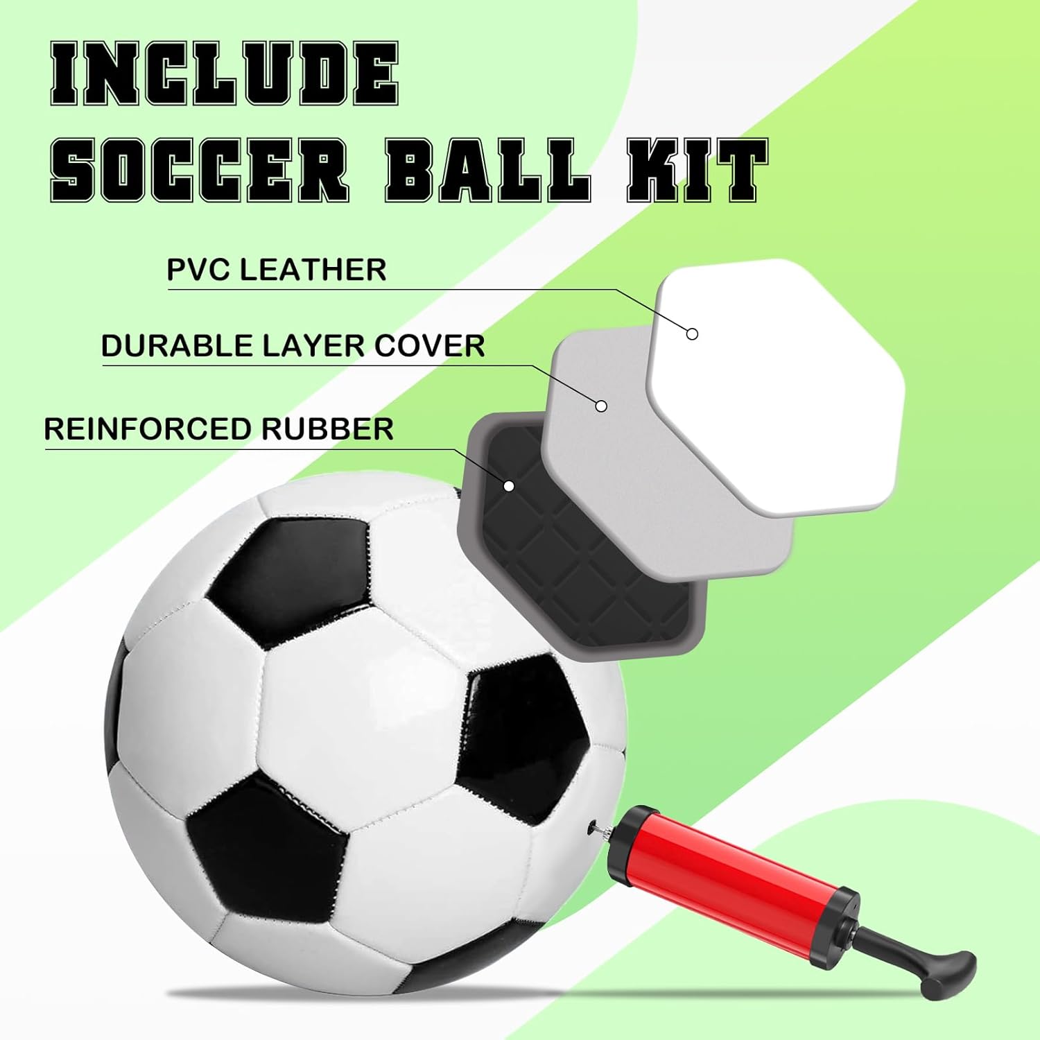 COMPREHENSIVE SOCCER NET SET: Our all-in-one kids’ soccer goal kit includes everything needed for a complete soccer experience. Each set comprises 4x6FT soccer goals, 1 standard size 3 soccer ball, 1 inflation pump with a needle, 8 soccer cones, 4 U-shaped metal ground stakes, and 1 carrying bag. Whether honing soccer skills or organizing a friendly tournament, this portable soccer goal set ensures unforgettable moments.