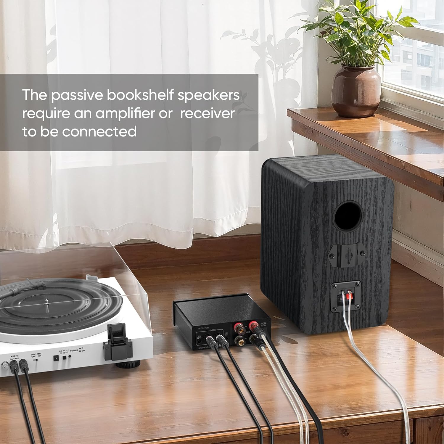 Versatile Compatibility: The passive speakers can be used in a variety of settings, including as part of a surround sound system for movies or gaming. With its natural sound and stylish design, it’s the perfect choice for any music lover.