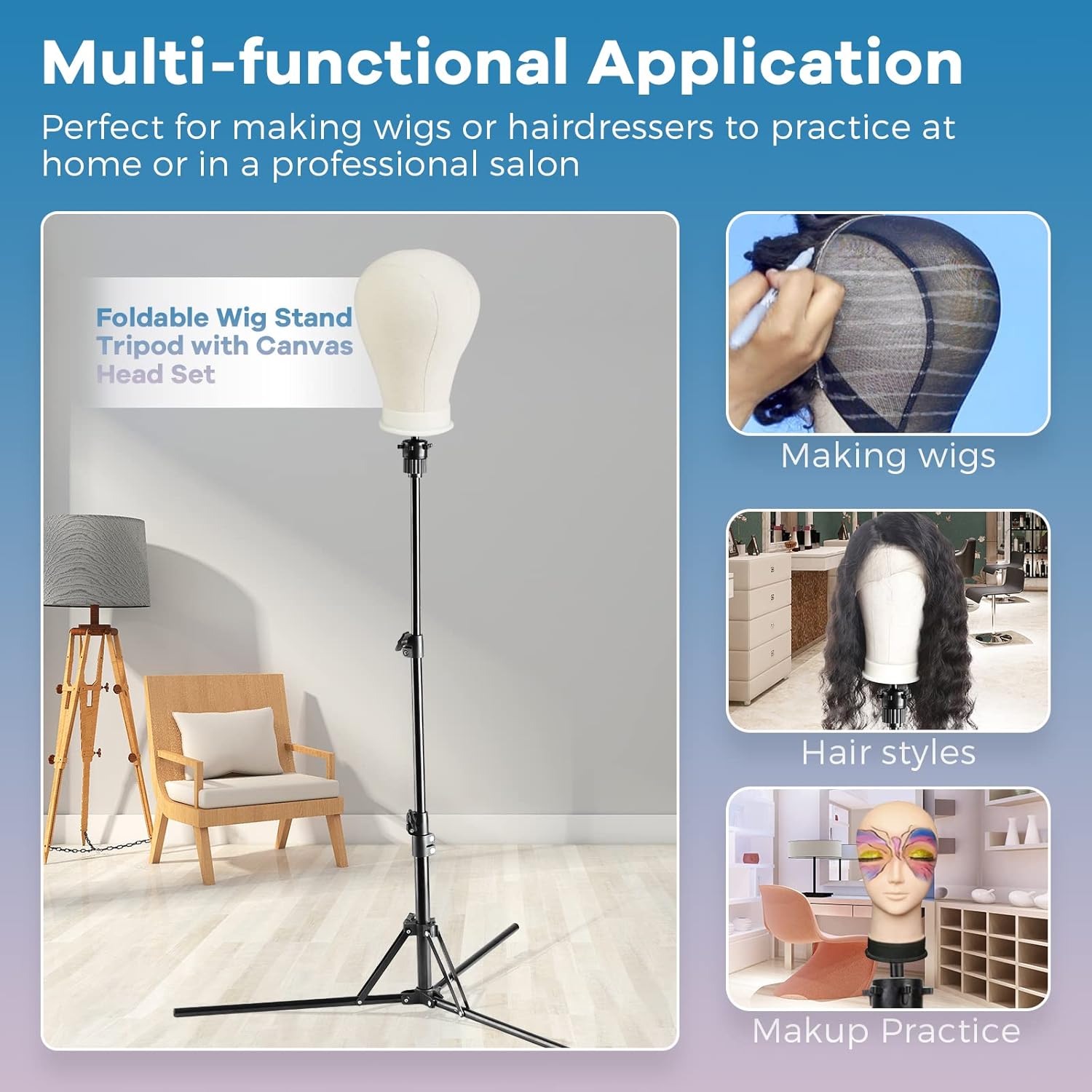 Convenient Wig Stand: Our lightweight and adjustable mannequin stand tripod can be set up to 63 inches, and comes with both tripod and table clamp options, allowing you to work on or display your wigs anywhere.