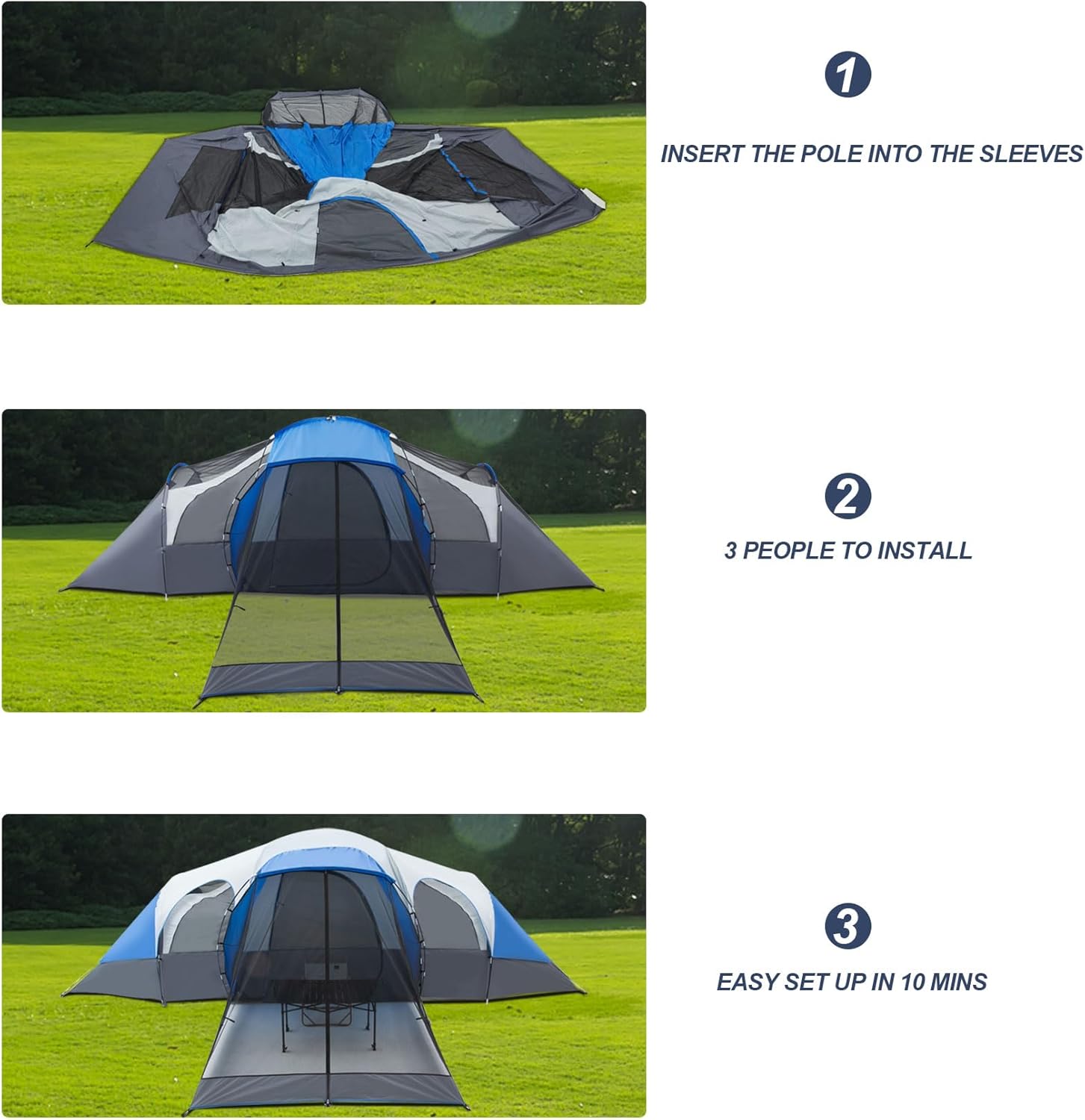 【Spacious 12 person Cabin Tent】This large tent is 21′ x 15′ design with 78in Center Height create more space to stand up changing and move.Perfect for families camping outdoors to enjoy a pleasant time, this is an ideal choice.