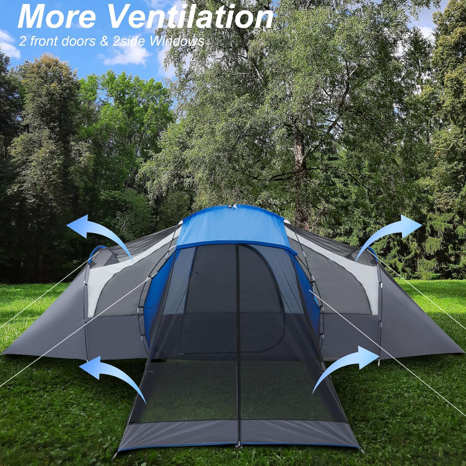 【Breathable and Ventilation Design】Front screen porch area for Can block UV, enjoy the night view& insect free sleep. lage Mesh tent top and doors offer great views and ventilation.Ensure you feel nature outdoors camping, have a pleasant experience.