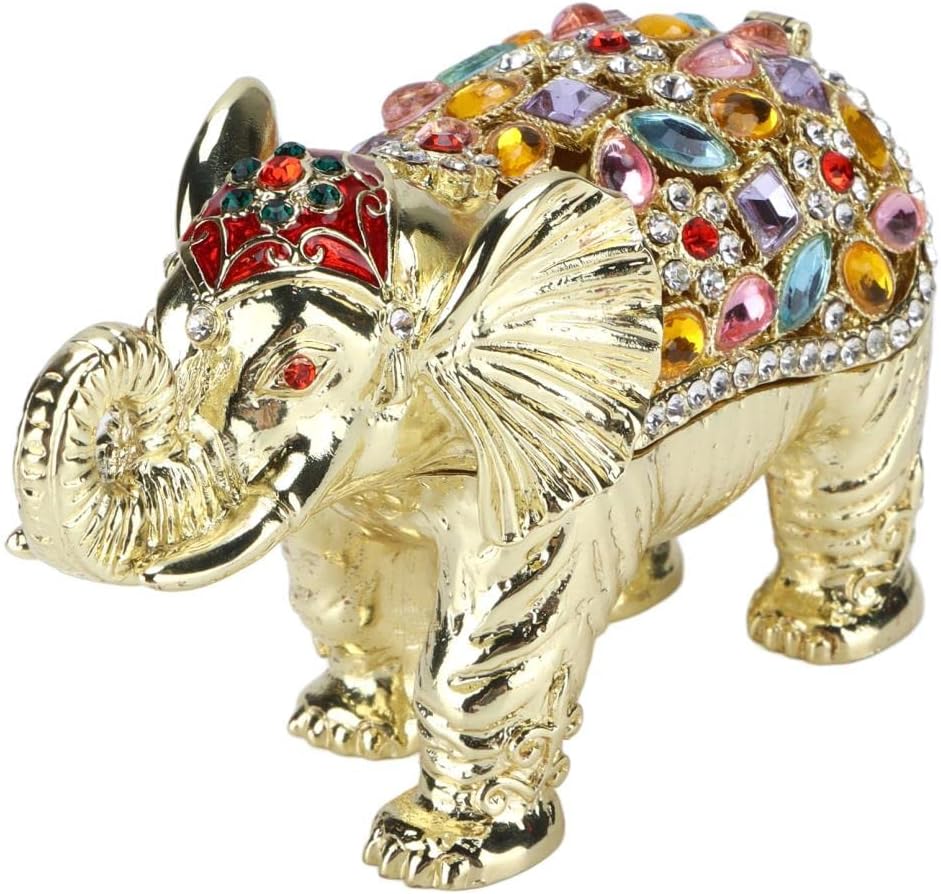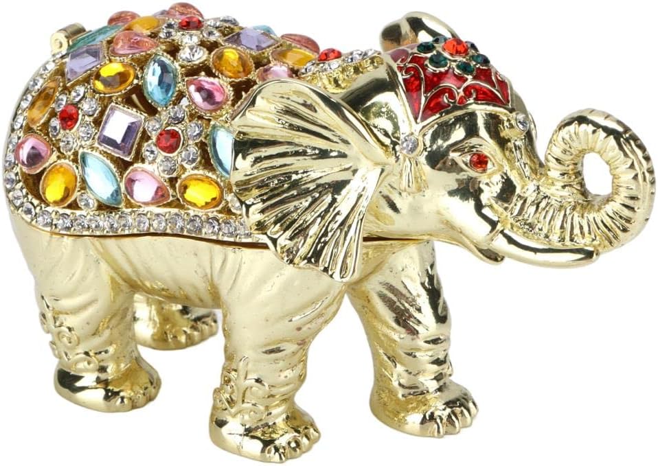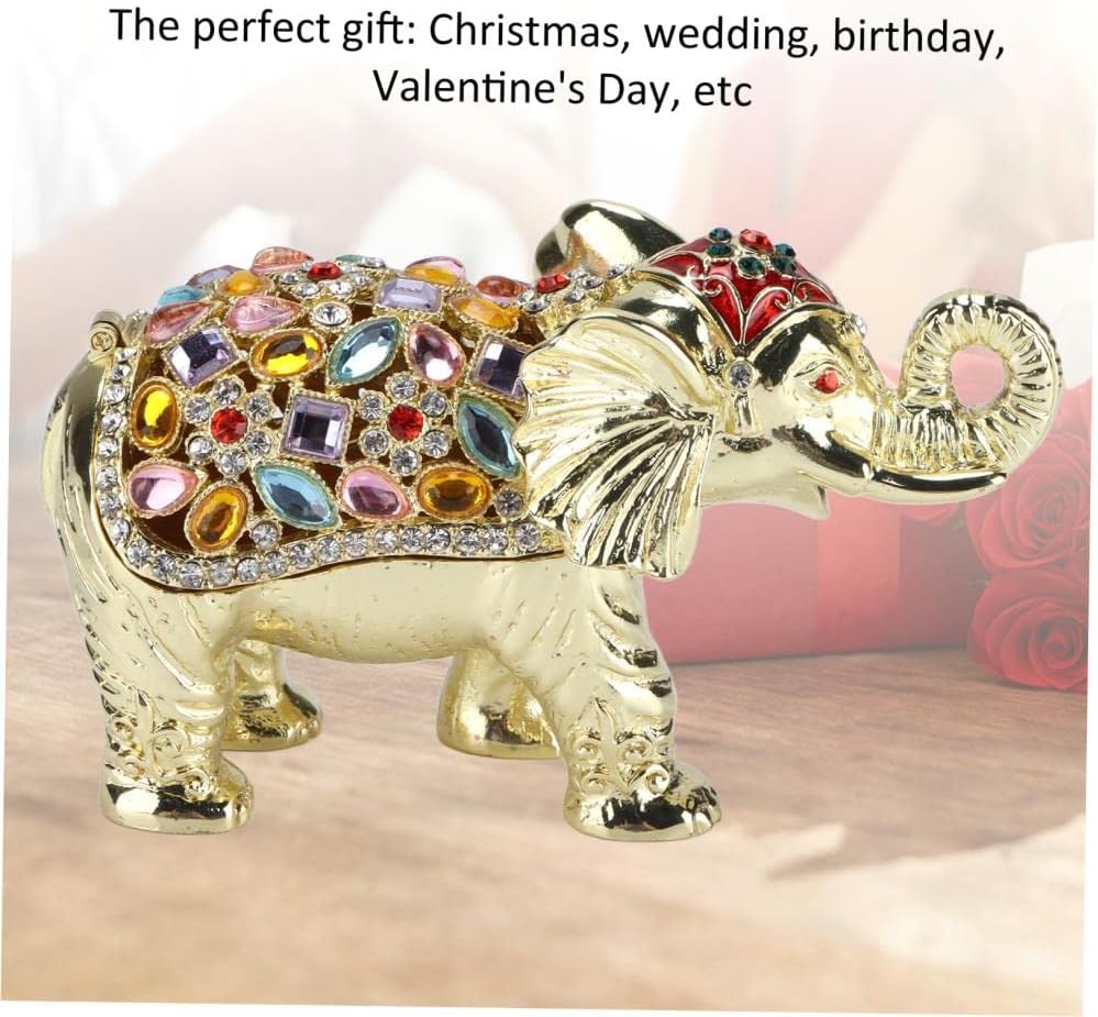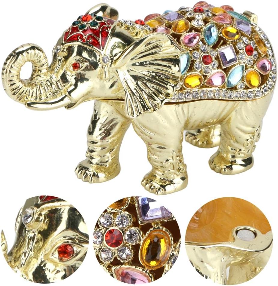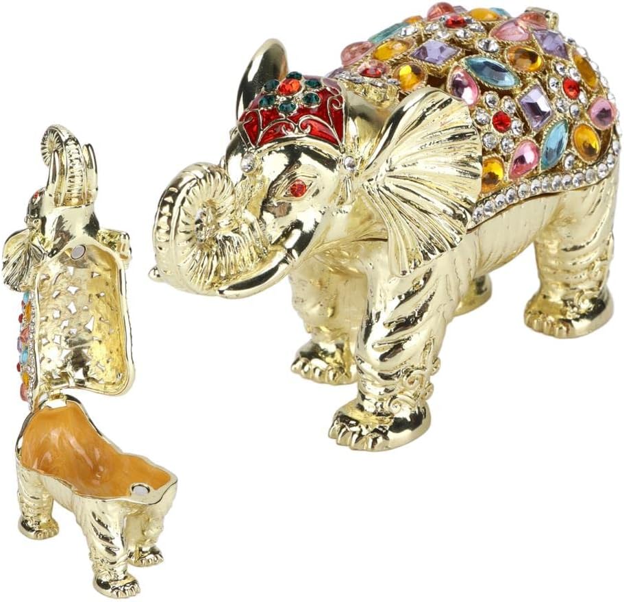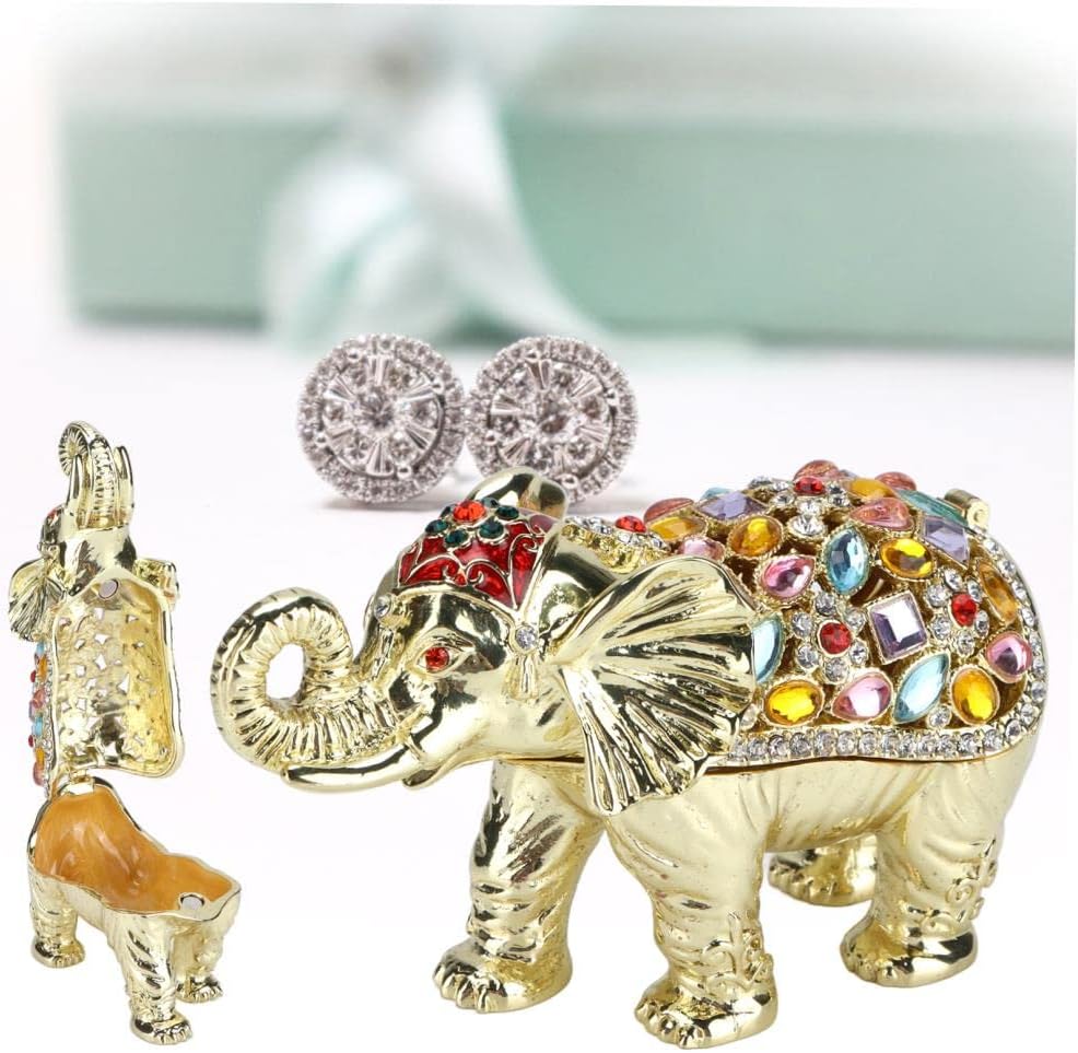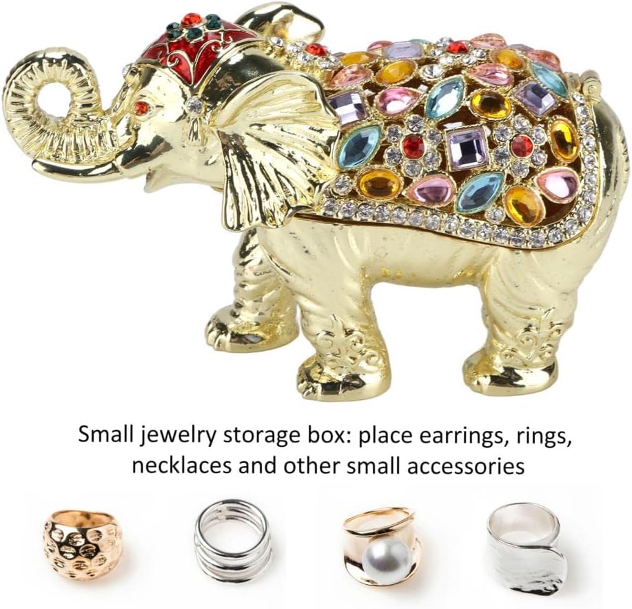 Luxurious and sophisticated design Spacious storage for small jewelry and trinkets materials and exquisite workmanship for women and girls Adorable elephant figurine with colorful rhinestones