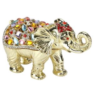 Elevate your décor with our Elegant Jewelry Box: The Elephant Jewelry Box exudes luxury and sophistication with its bejeweled elephant figurine perfect for organizing your small trinkets. Made with zinc alloy and rhinestones this exquisite piece is a precious gift for women and girls. Adorned with adorable elephant shape and colorful rhinestones it beautifully complements your cherished jewelry collection