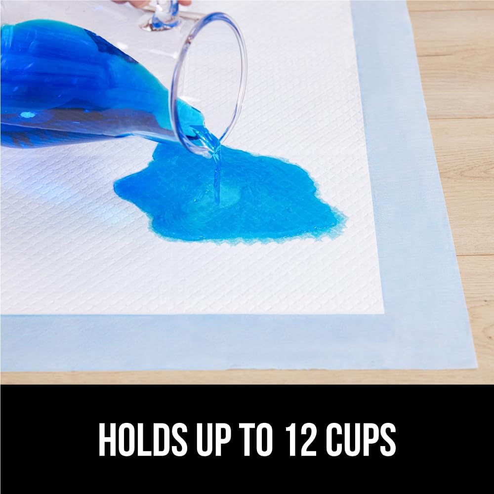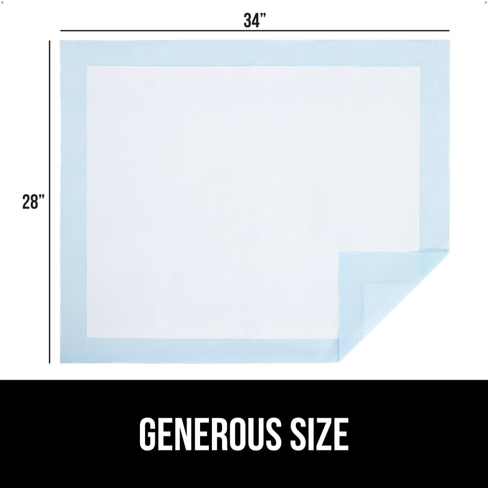 Gorilla Guard Absorbent and Leak Proof Disposable Puppy Pads for Dogs, 100 Pack, 5 Layer Pee Pad, 12 Cup Absorbency for Doggy Potty Training, Quick Dry Odorless Housebreaking Supplies, 28×34 in