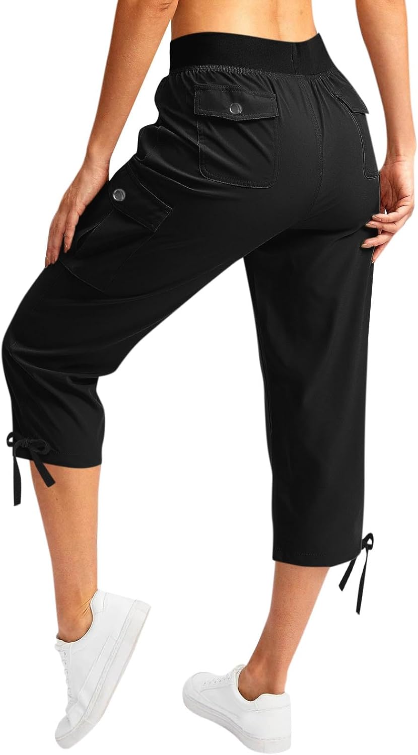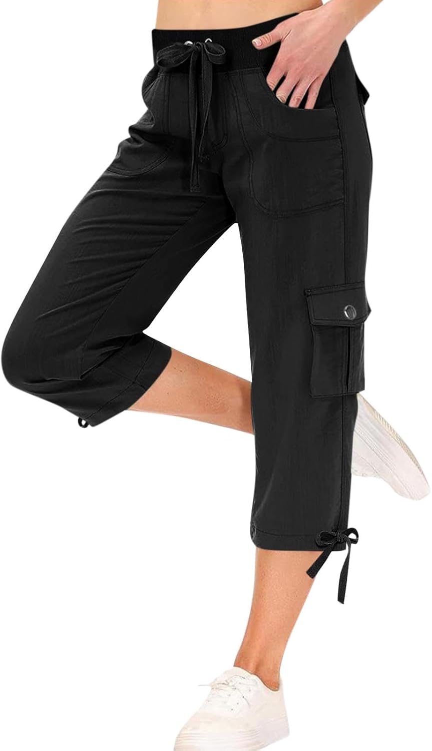 Cargo Capris for Women Casual Drawstring Capris Pants with Pockets Plus Size Quick Dry Hiking Pants Travel Pants