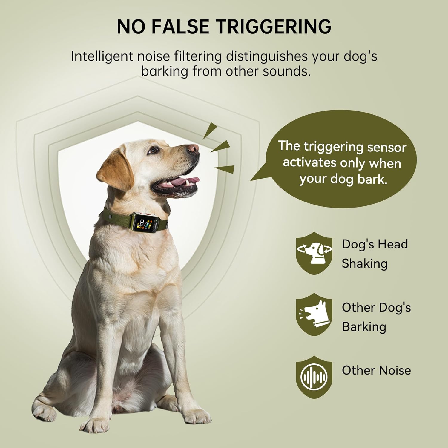 Dog Bark Collar,Rechargeable Smart Barking Collar, Anti Bark Training Collar with Adjustable Sensitivity Beep Vibration Shock, Bark Shock Collar for Small Large Medium Dogs (Green)