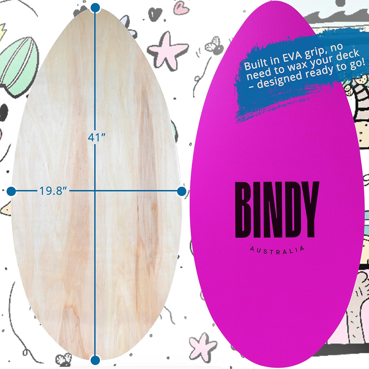 BINDY Australia Skimboard for Beach Kids with Storage Travel Bag – 41” Beginner to Intermediate Wooden Skim Board – Kids Beach Skim Boards for Beginners Durable, Lightweight Wood Body Board with EVA Grip Pad