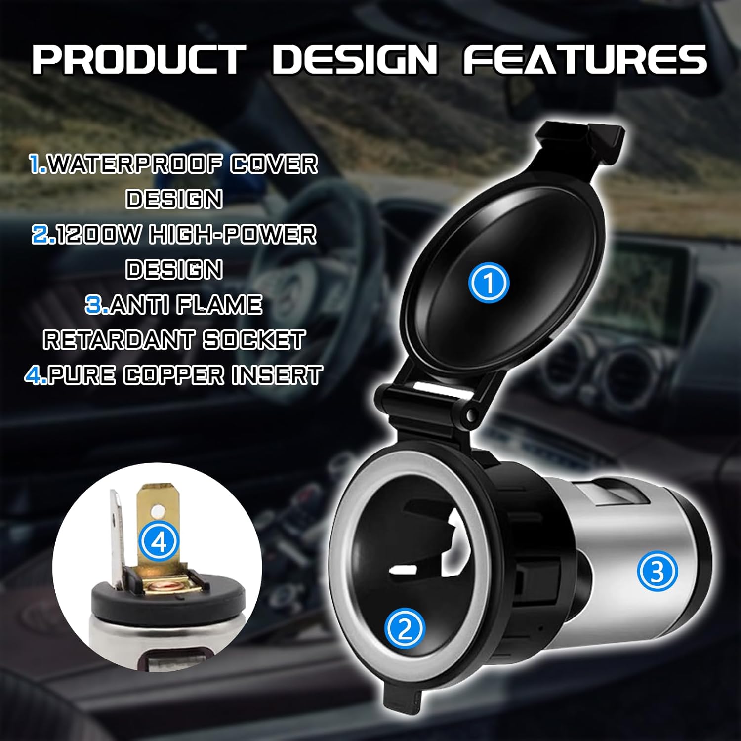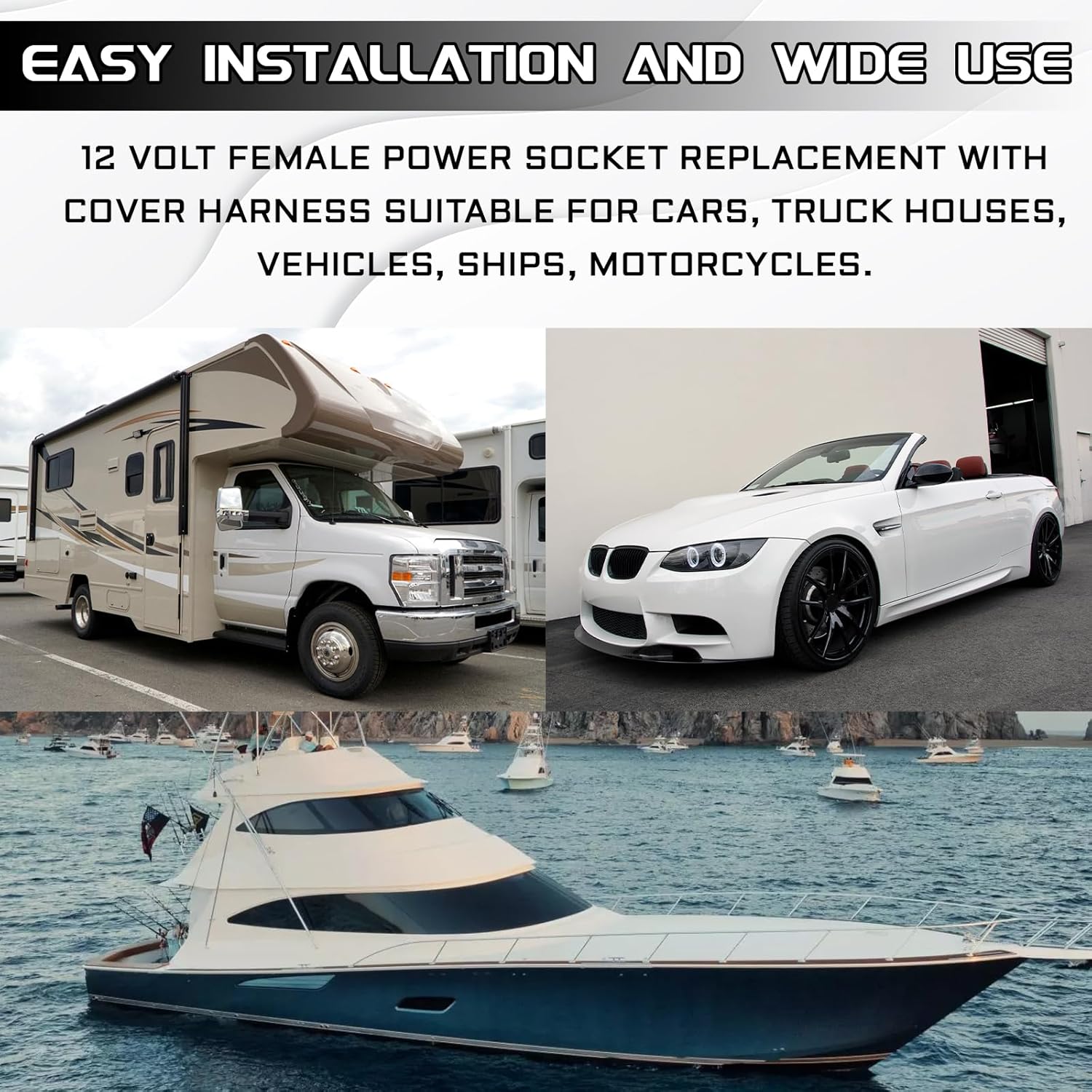 【Widely Applicable】The cigarette lighter socket suitable for powering 12-24V vehicle power devices with a wide range, such as cars, trucks, SUVs, RVs, vans, motorcycles, boats, ATVs, UTVs and so on.