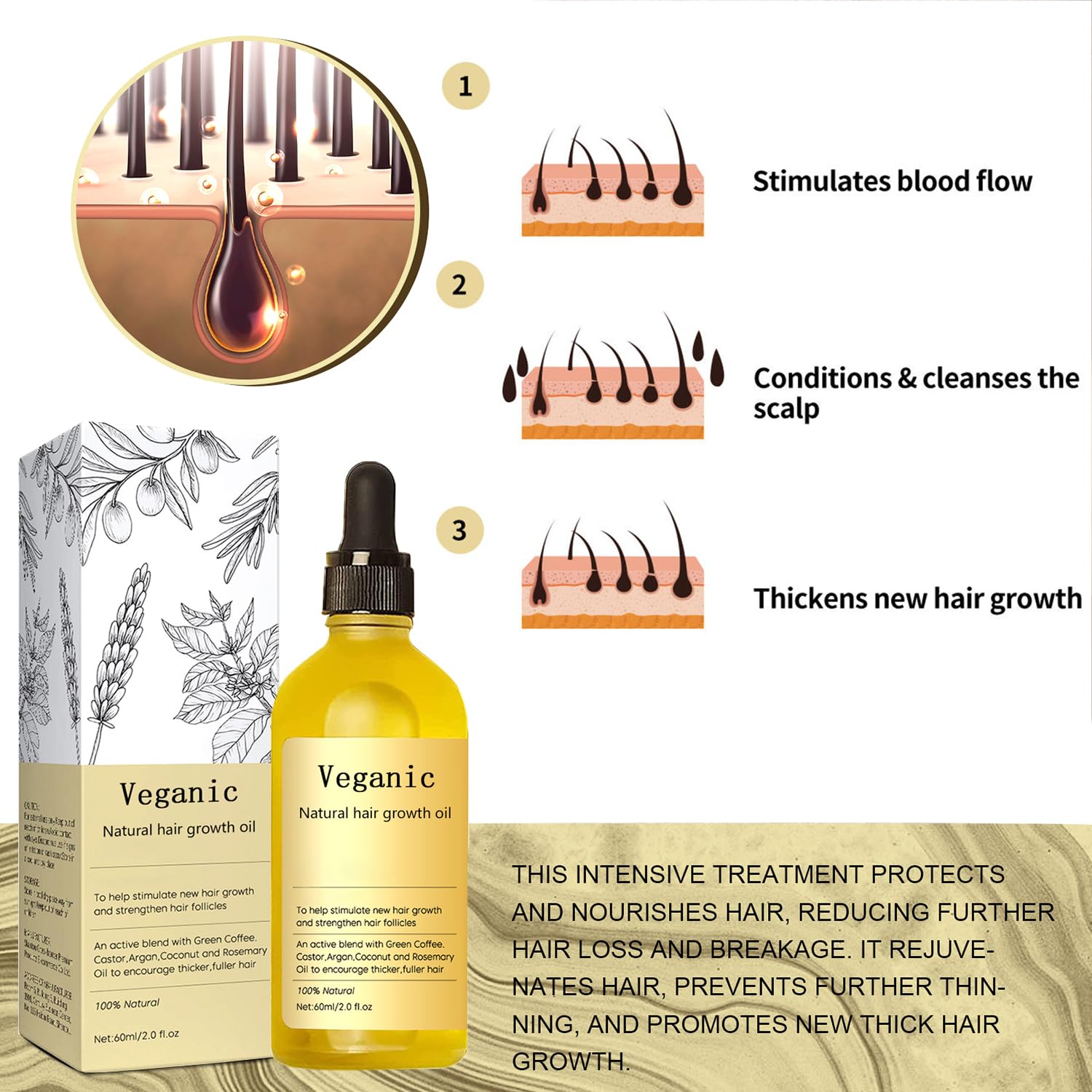 Veganic Natural Hair Growth Oil, veganic hair growth oil Rosemary Oil for Hair Growth Organic,veganic hair oil for dry damaged hair and growth (2 Pcs)