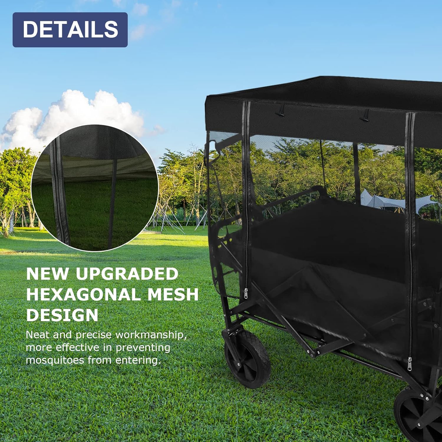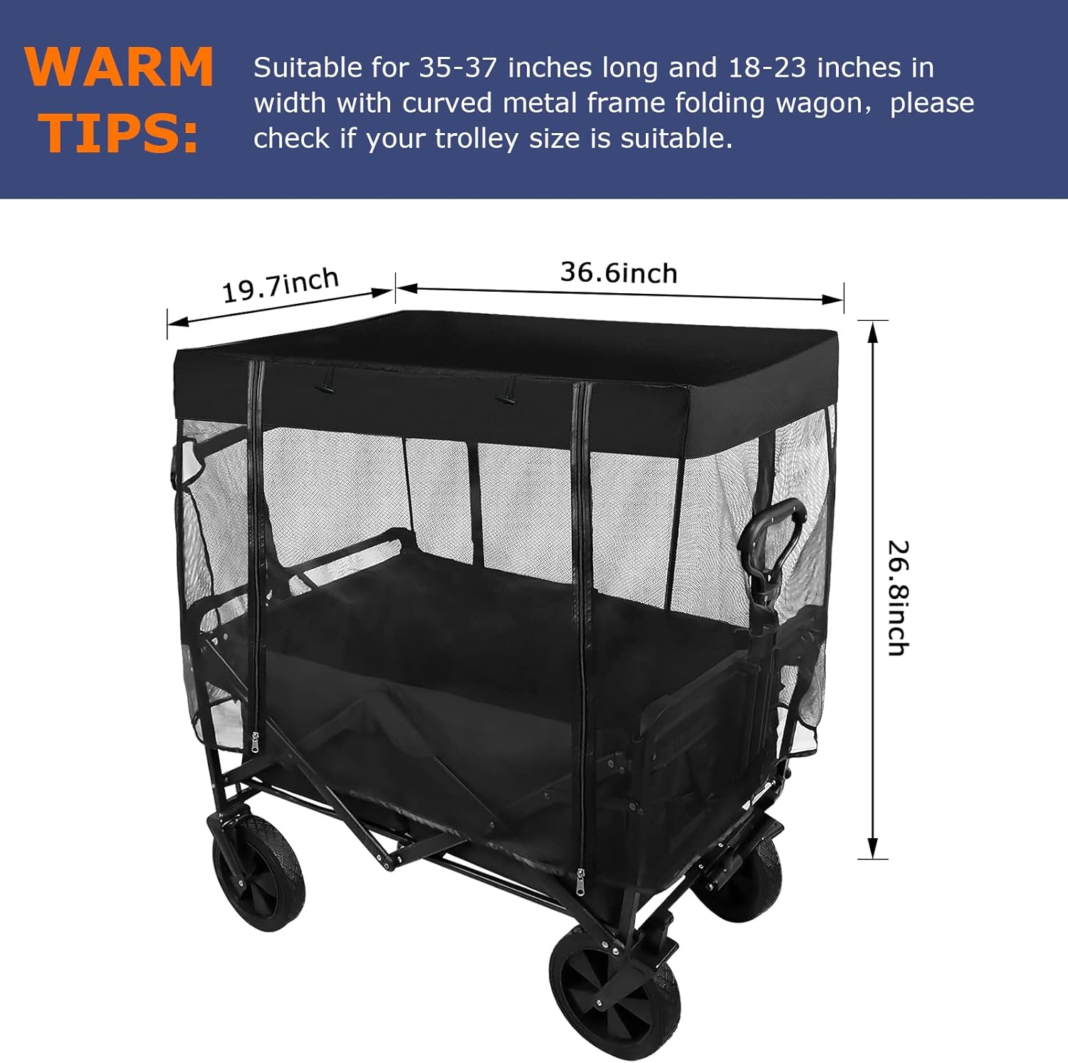 【Size】: Mosquito protection cover 36.6 * 19.7 inches long * 19.7 inches wide, suitable for most 35-37 inches long, 18-23 inches wide folding cart, please confirm the size of your cart before purchase (Products need to purchase Wagon and bracket to use,Suitable for camping cart with a roof)