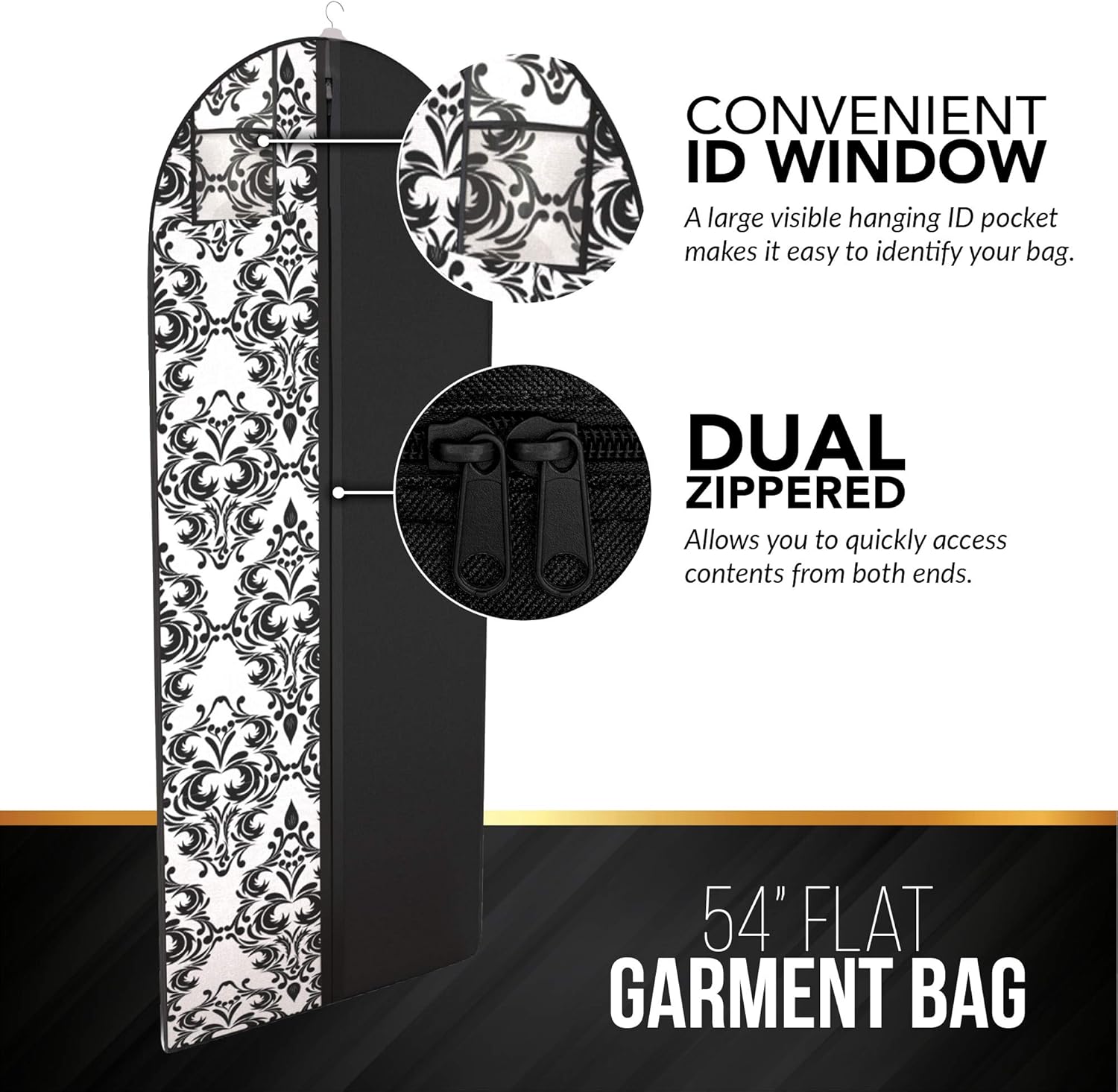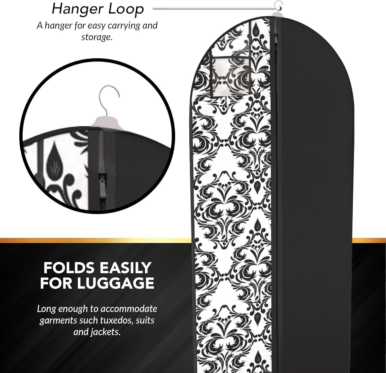 Damask Dress and Gown Garment Travel Bags – 54″ x 24″ -Women’s, Hanging Window