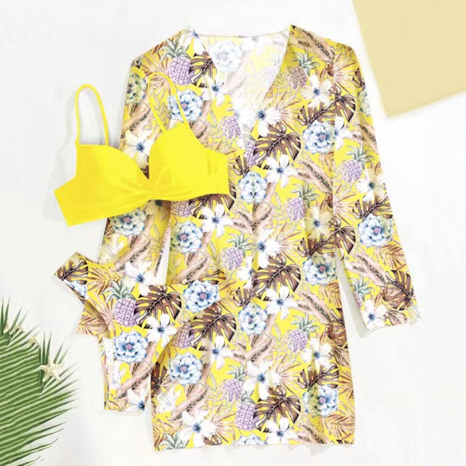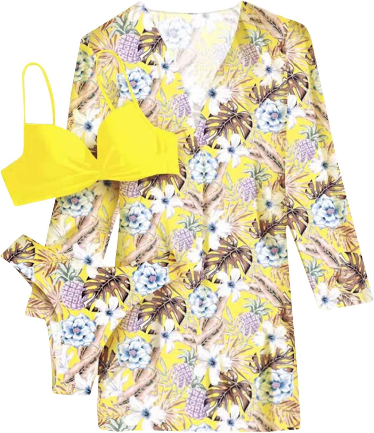 Plus Size Bathing Suit Tops 2023 Sexy 3 Piece Bikini Set Cover Up Swimsuit for Women Long Sleeve Swimwear