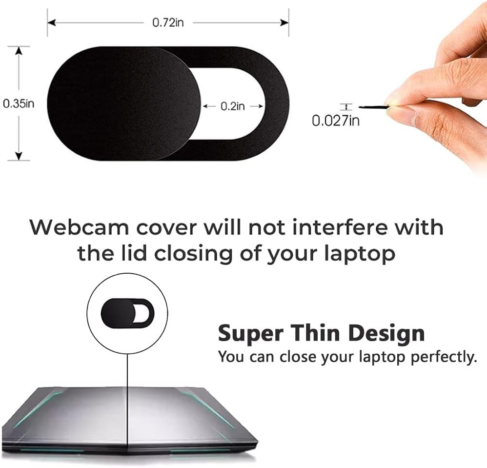 【Super Slim and Durable】Mini-size computer camera cover is only 0.027 inches in thickness which will not interfere with the closing lid of your laptop. The cell phone camera cover is made of premium high-strength ABS plastic that could provide long-term reliable protection for your privacy.
