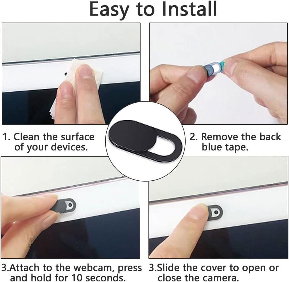 【Easy to Install and Use】The laptop webcam cover is super easy to install. Just need to remove the back sticker and align it to your webcam, attach and press firmly for 15 seconds. Webcam privacy cover can be opened or closed with just one simple finger movement, when the webcam is not in use just cover it to provide you with privacy security.