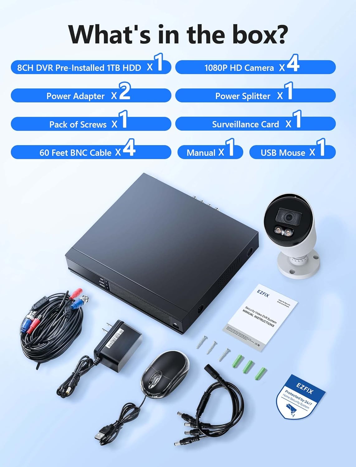 [Trust-Worthy Security Solution for Peace of Mind] OUR PROMISE for EZFIX CCTV camera security system: NO monthly fees charges, but only a FREE professional support team awaits! Please feel free to contact us if you have any questions with our camera system! Get this indoor outdoor camera now to keep an eye on your house/home, shop/store, warehouse, parking lot, courtyard, etc.!
