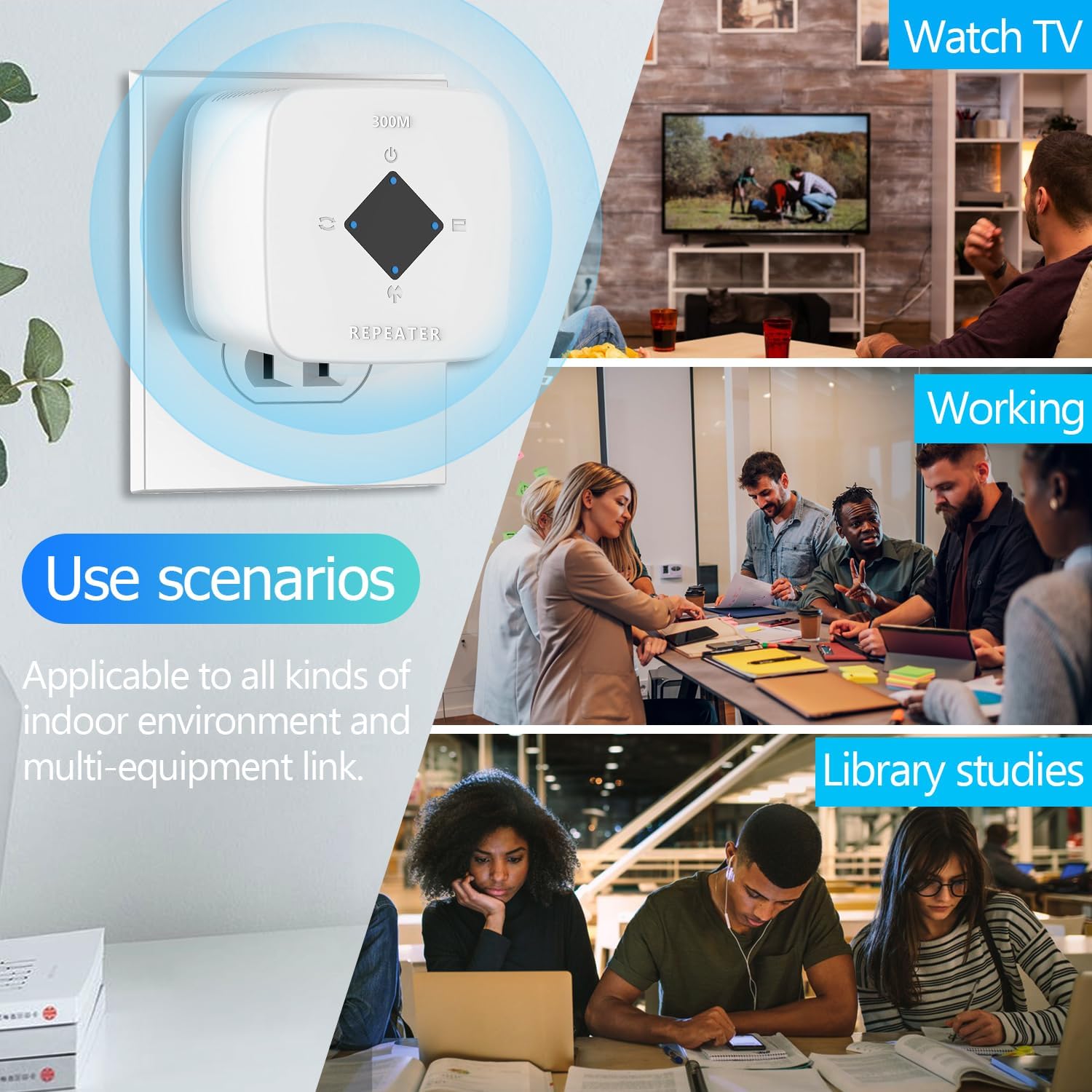 【More Zones】Spots in rooms,basement,garage,bedroom, with weak WiFi coverage with our WiFi range extender. Please note :the WiFi repeater only extends WiFi coverage and does not speed up the original router or maintain the same speed as the original router.(When using repeater Mode, the router speed may be reducedas the distance increases)