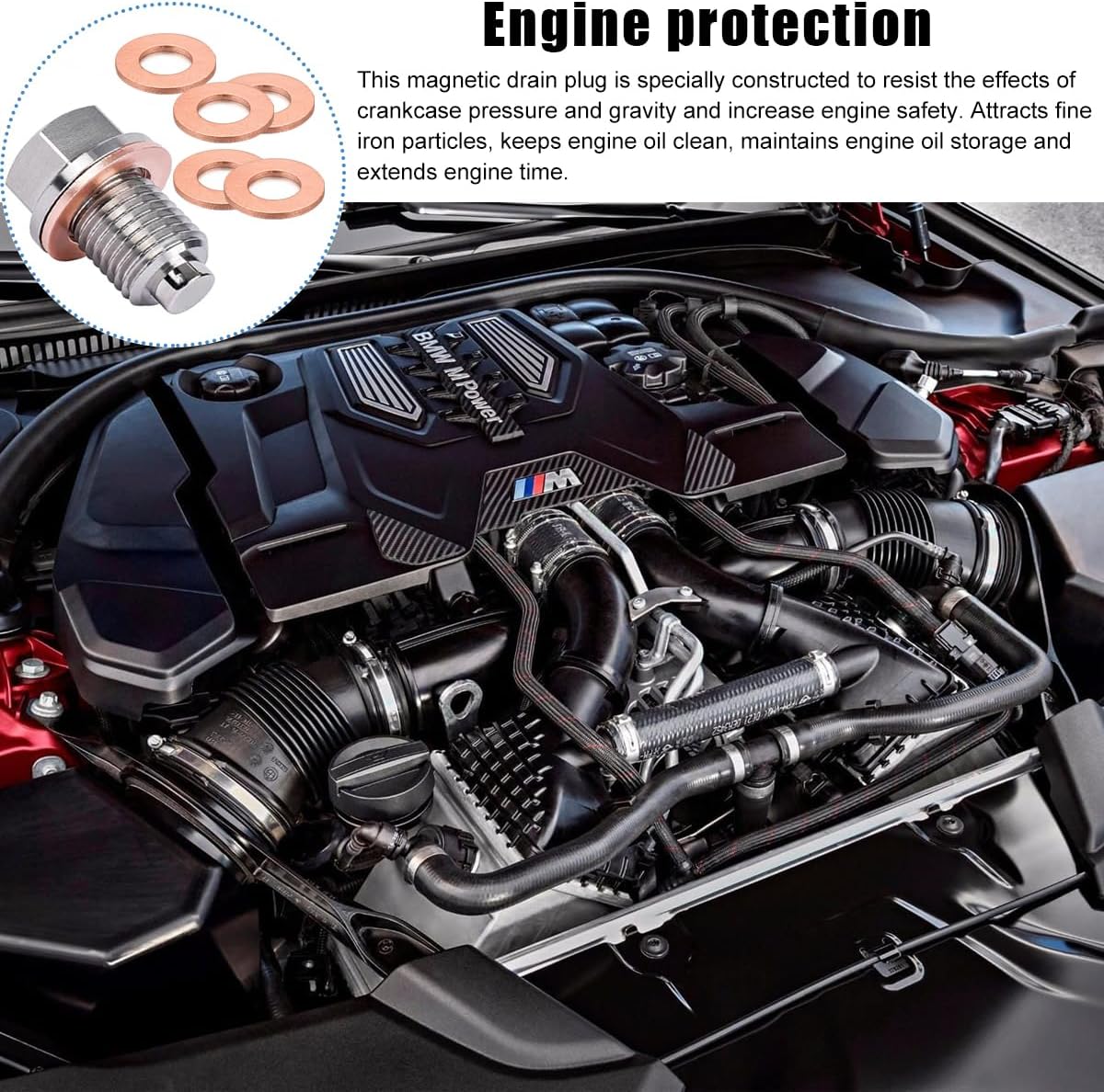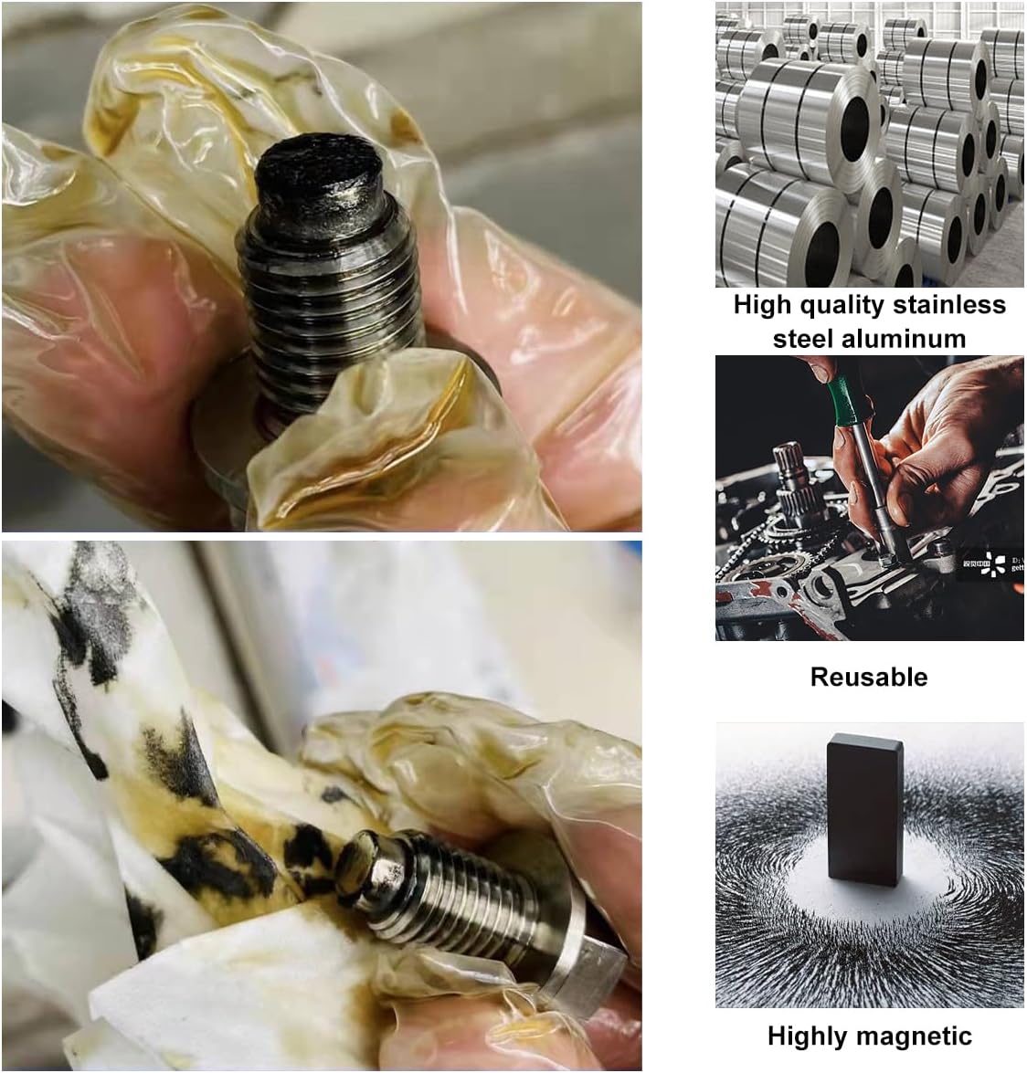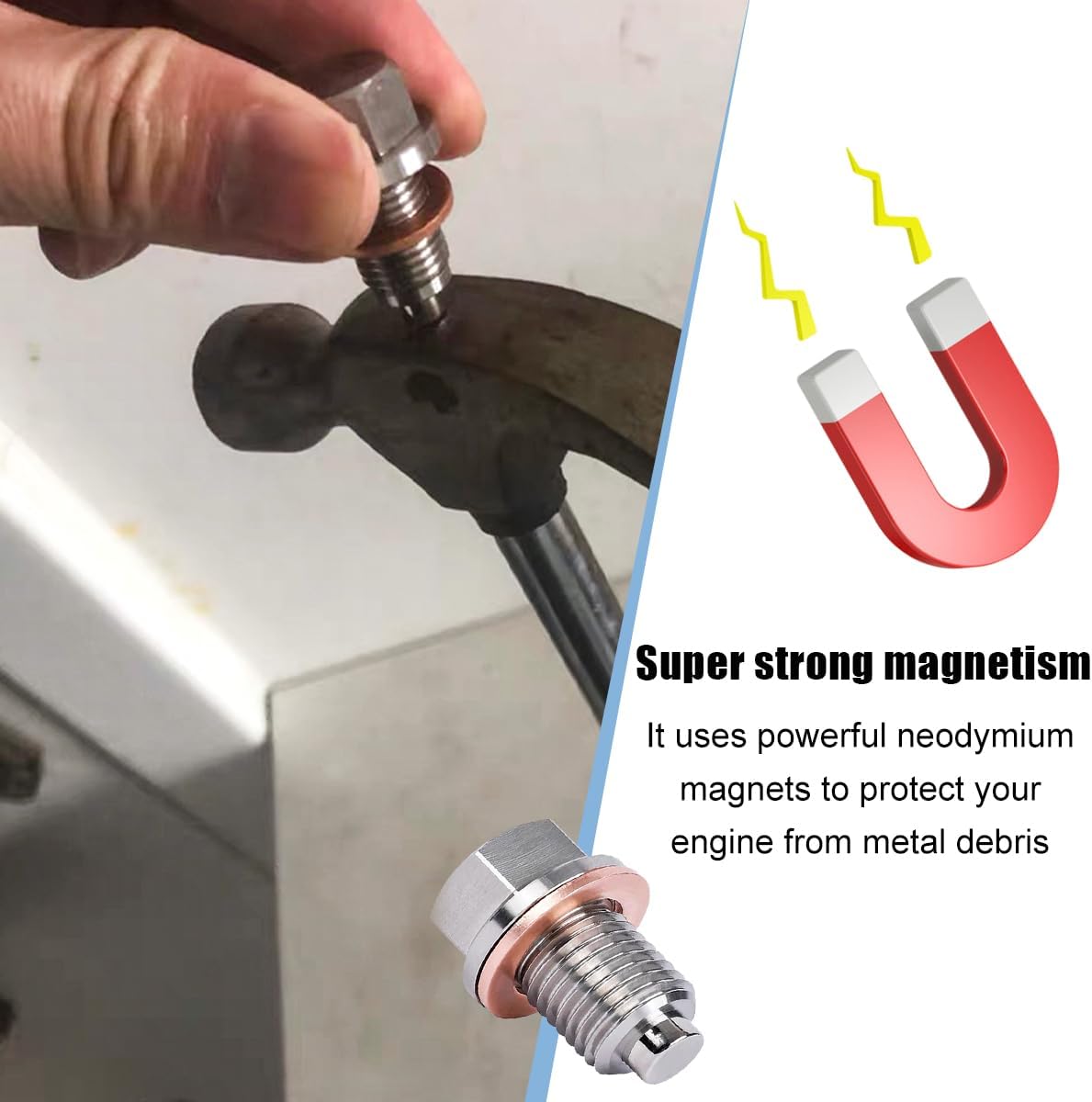 【Strong Magnetism】: Chips or wear particles missed by the oil filter are abrasive and can damage your engine. This oil drain plug is equipped with a neodymium magnet that is super magnetic to attract these small particles. It will firmly hold any collected metal debris, preventing them from harming your engine.