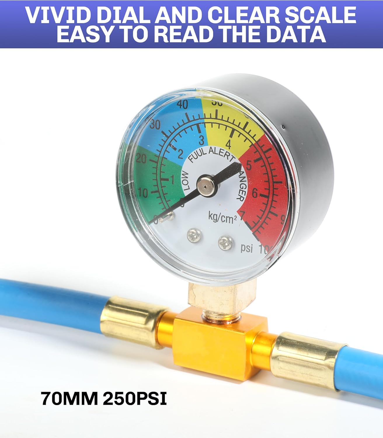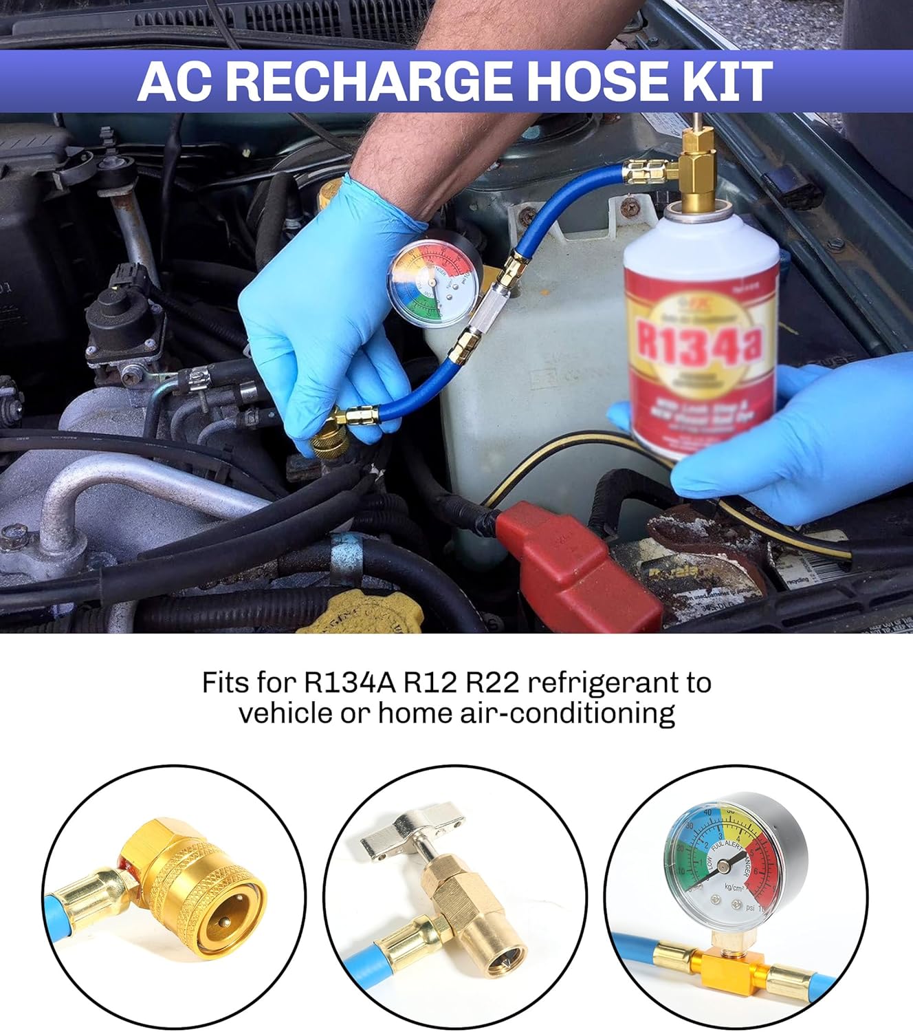 [Set Includes] 1/2’’ ACME can tap, recharge Hose with gauge and R134A low side quick coupler.