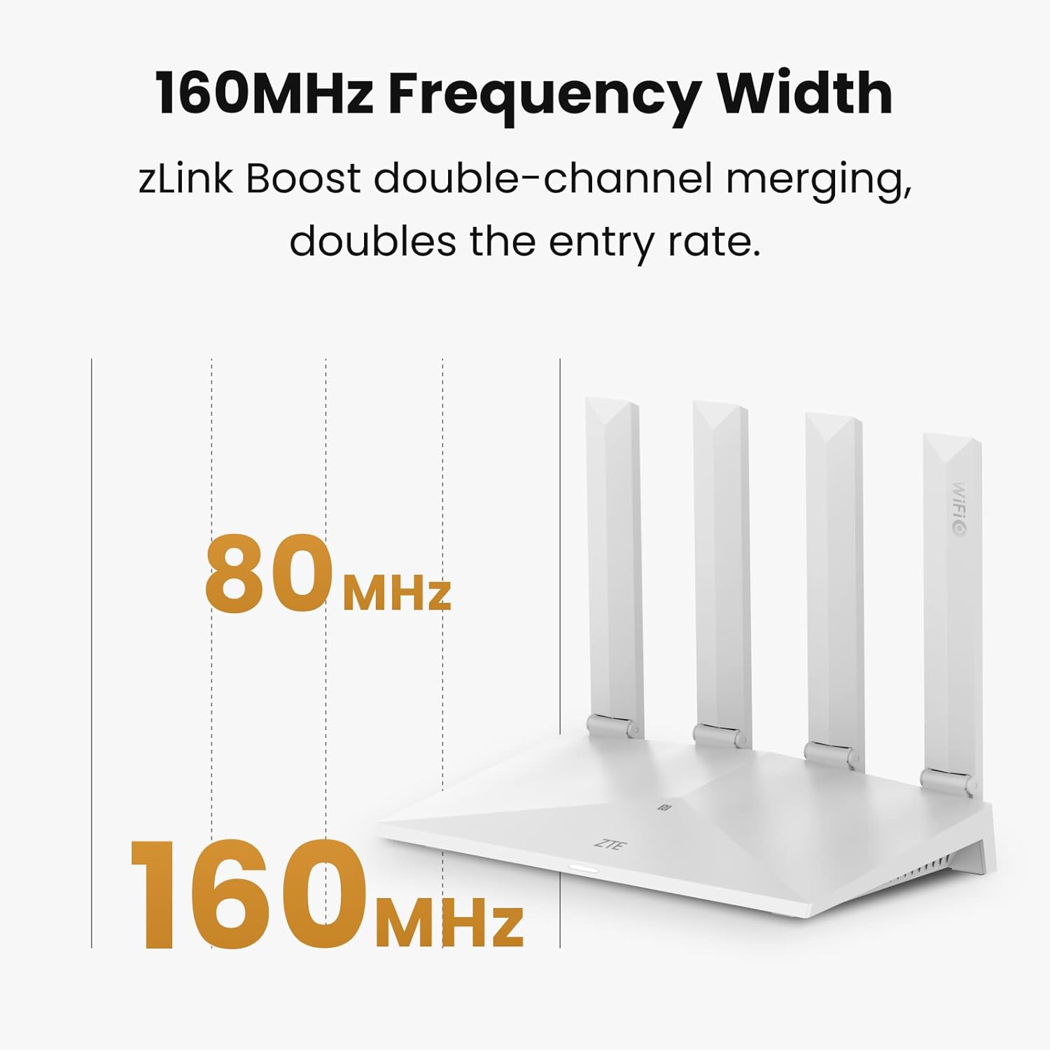 【Speed Up to 3 Gbps & 160MHz Bandwidth】Equipped with a bandwidth of 160MHz, this ZTE wifi 6 (802.11ax) router can reach total transfer speeds of up to 3 Gbps. Additionally, this internet router with OFDMA and MU-MIMO technologies also optimized the connections and simultaneously maintain communication across a maximum of 256 devices. Enjoy uninterrupted access to movies, gaming, video calls, and more across all your devices simultaneously, and with no buffer.