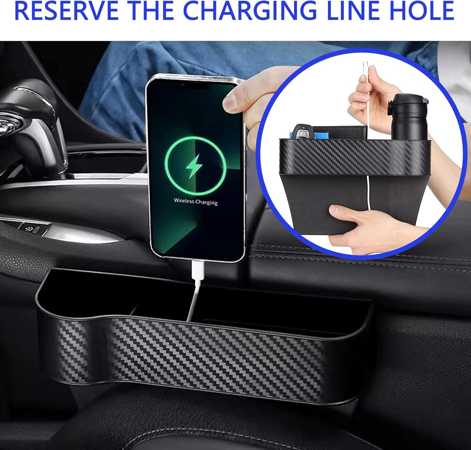 Car Seat Gap Filler Organizer, Multifunctional Car Seat Organizer, Car Seat Organizer, Car Accessories with Car Seat Storage Organizer (Black-Carbon Fiber)