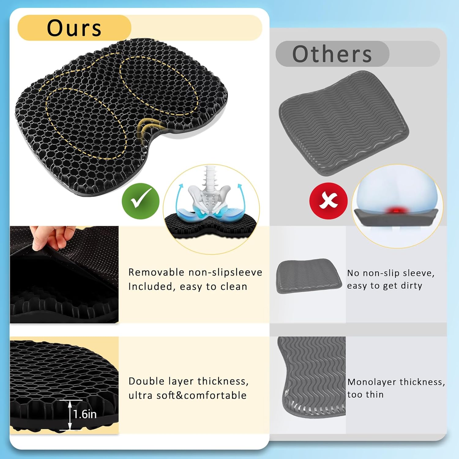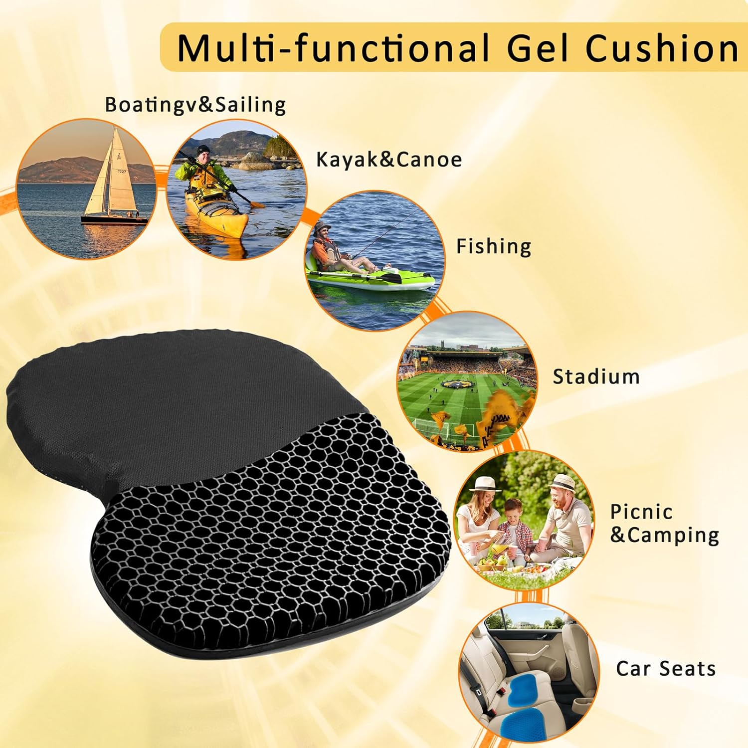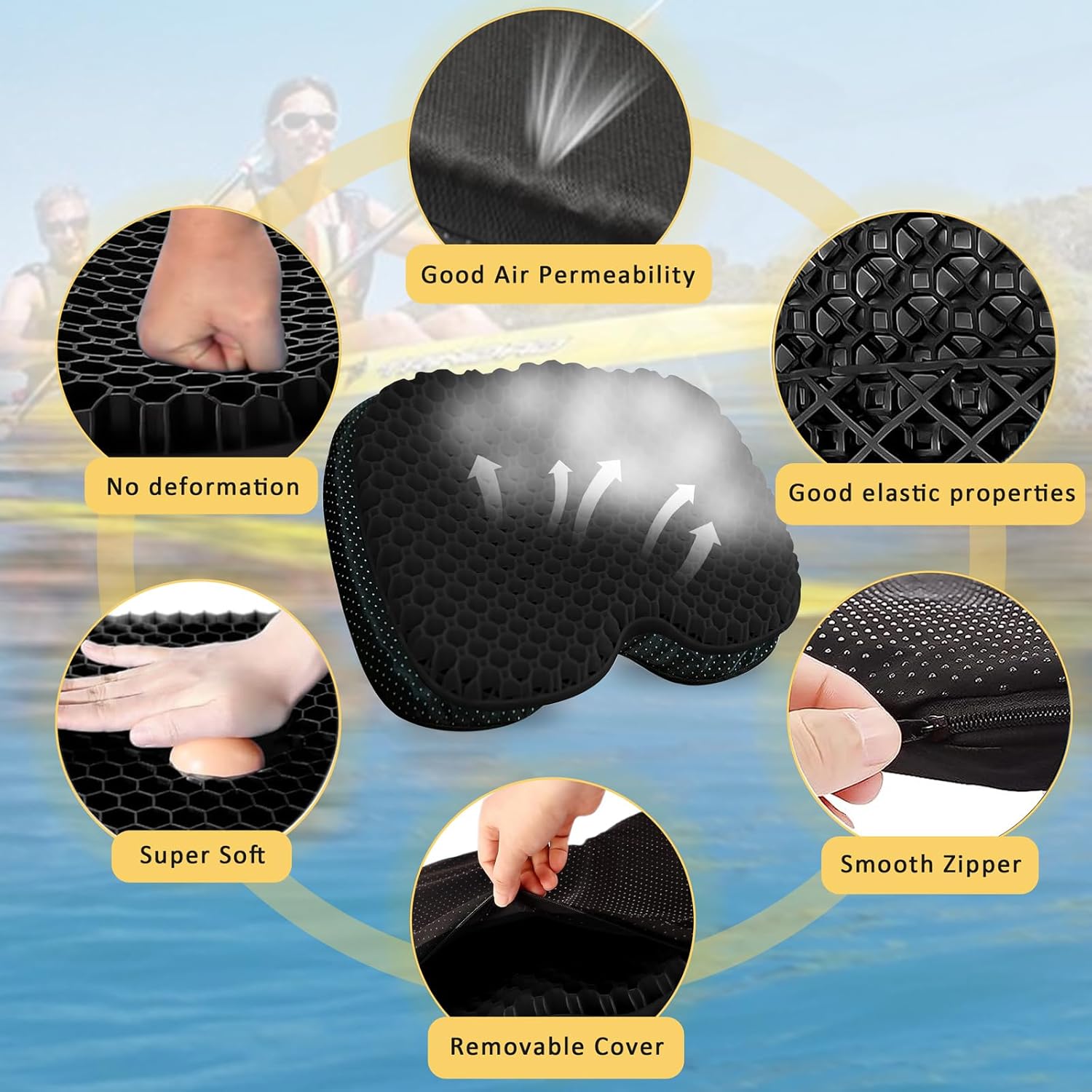 【Breathability & Coolness】Experience a new level of comfort with our double-layer gel kayak seat. Crafted from premium gel material and thicker than traditional cushions, our kayak seat cushion is designed with your comfort in mind. The thoughtful U-shaped design and ergonomic 3D dimensional contours make it a true game-changer, providing maximum support while ensuring breathability and preventing seat sweat. Say goodbye to discomfort and hello to an enjoyable and cool kayaking experience with our innovative gel seat cushion.