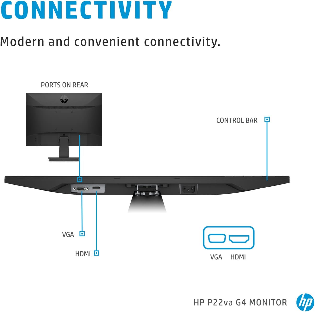 HP Newest P Series Business Monitor, 21.5″ Full HD (1920 x 1080) Anti-Glare Display, Onscreen Control, Low Blue Light Mode, HDMI, VGA, VESA Mount, 1-Year Standard Warranty, Black