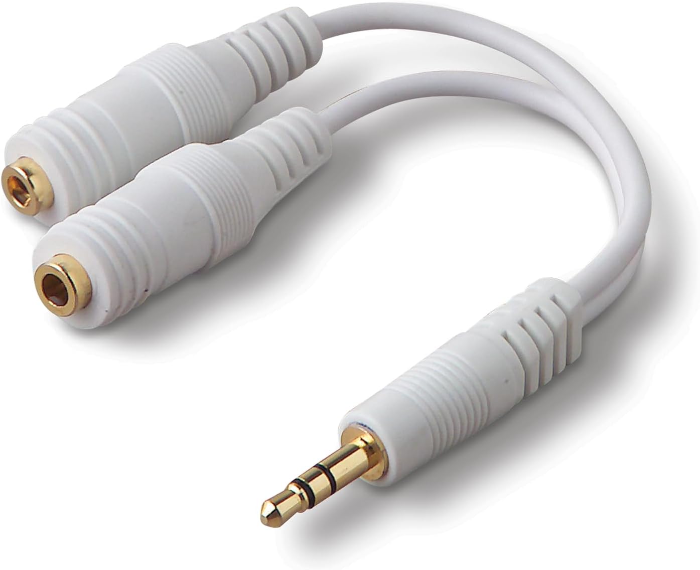 The Belkin F8V234-WHT iPod Speaker/Headphone Splitter lets you connect two mini-stereo headphones or speakers to the same jack on your iPod, portable cassette, or CD player. Belkin audio video accessories offer a variety of ways to install, expand, and upgrade stereo and home theater systems.