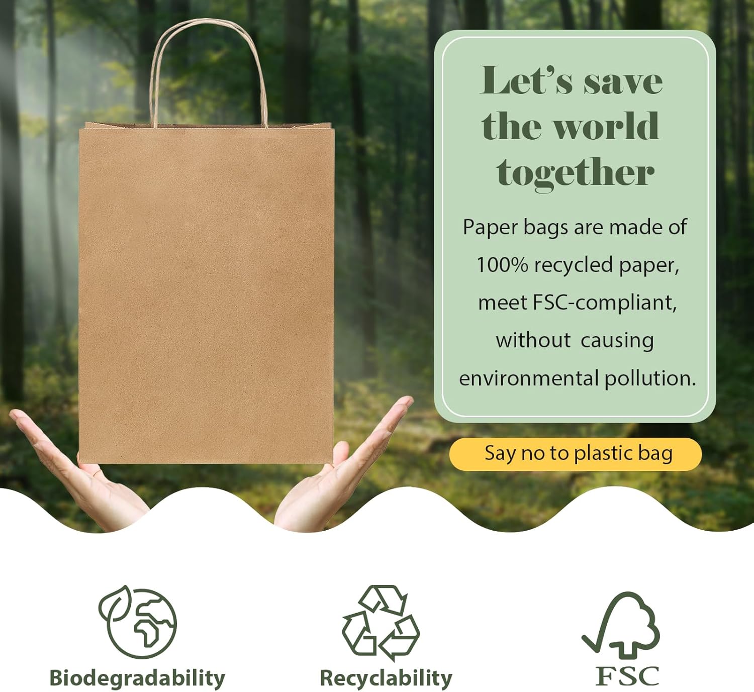 Eco-friendly Kraft Bags: The paper gift bags are made of 100% recycled paper,FSC-compliant. They are biodegradable, recyclable, non-toxic, odorless, and pollution-free, can be reused for many times.