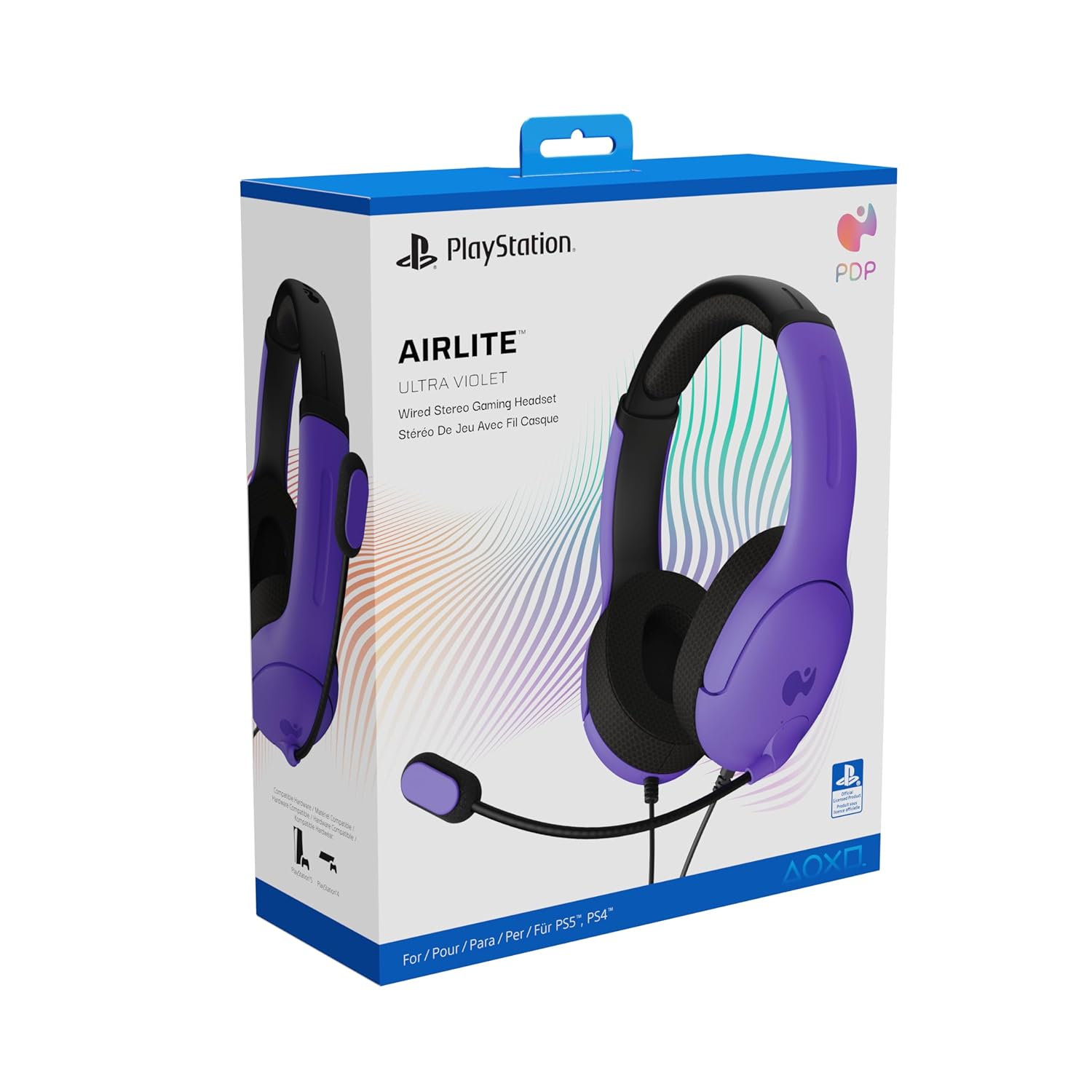 PDP AIRLITE Wired Headset, Officially Licensed Sony PlayStation 5, PlayStation 4, PS5/PS4/PS3/PC, Lightweight Durable Headphones, 3.5mm audio jack, Noise-canceling Flip-to-Mute Mic, Ultraviolet Purple