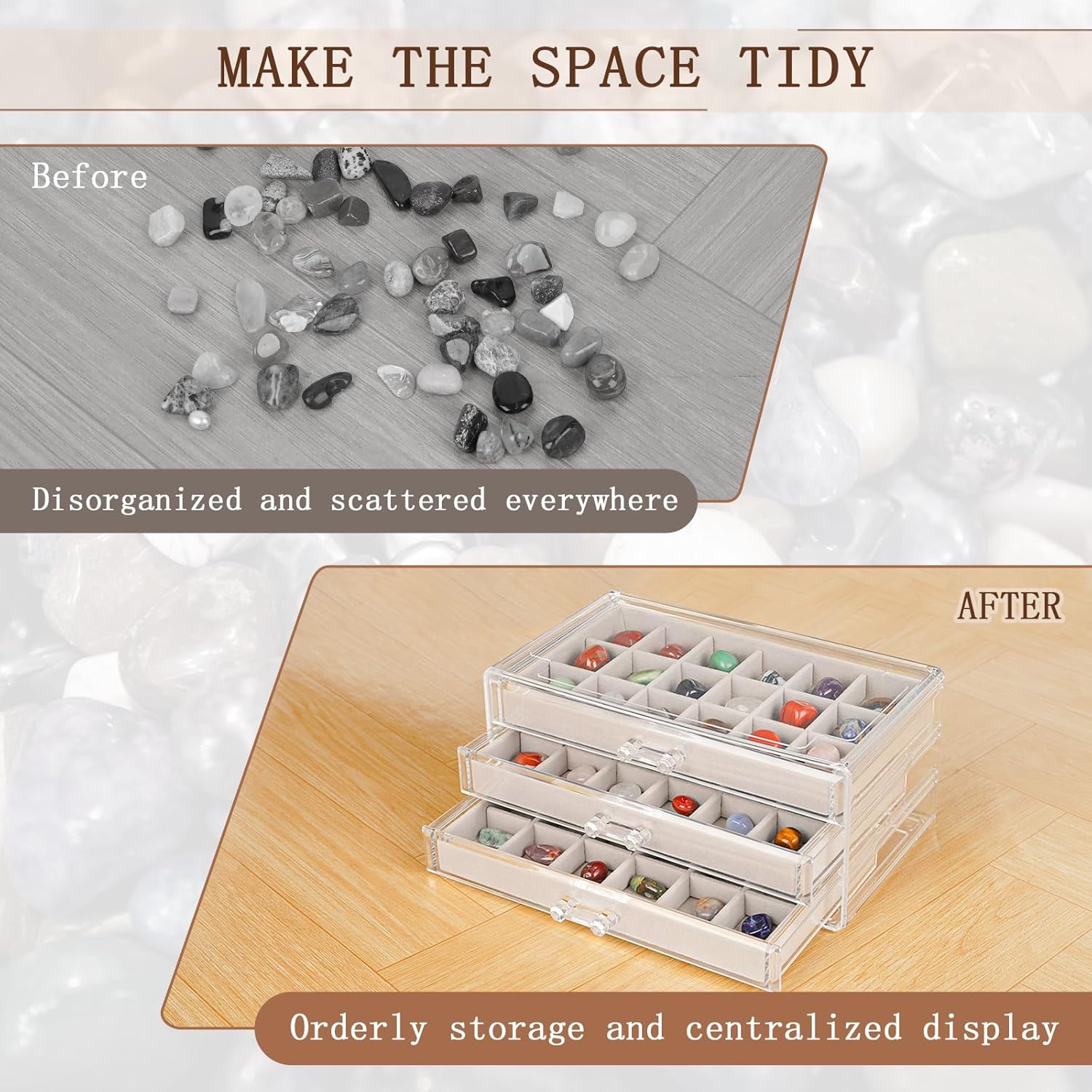 【High Quality Materials】:The lining of handmade flocked fabric provides a comfortable and delicate feel, without floating hair or wear, effectively protecting rock specimens, jewelry, earrings, etc., allowing your items to receive better protection.