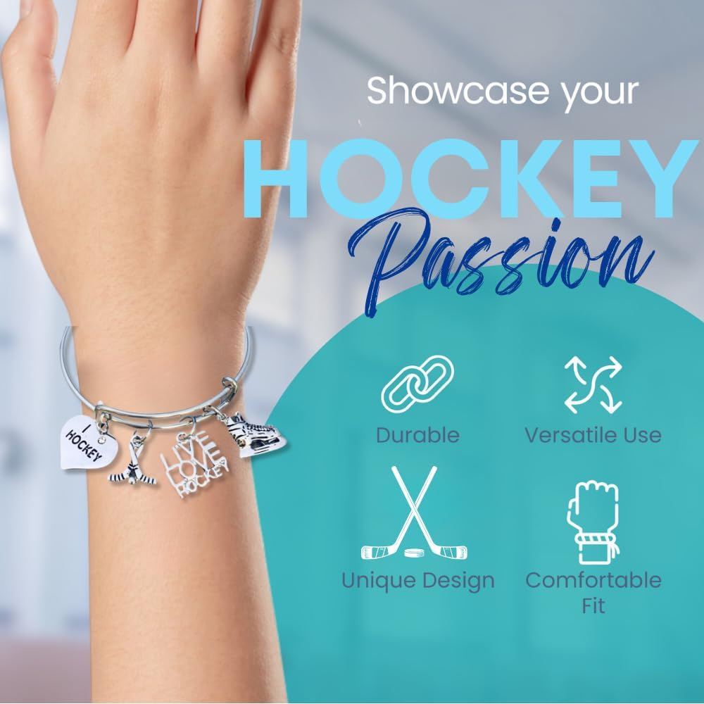 HOCKEY JEWELRY- Ice Hockey Charm Bangle Bracelet for Women, Teens and Girls