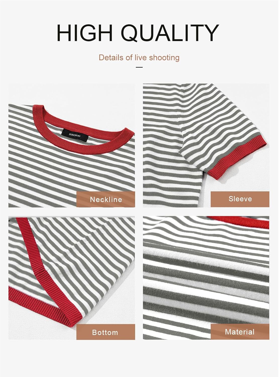 Dokotoo Womens Summer Tops Casual Crewneck Short Sleeve Striped Color Block Knitted High Low Trendy Pullover T Shirts Blouse