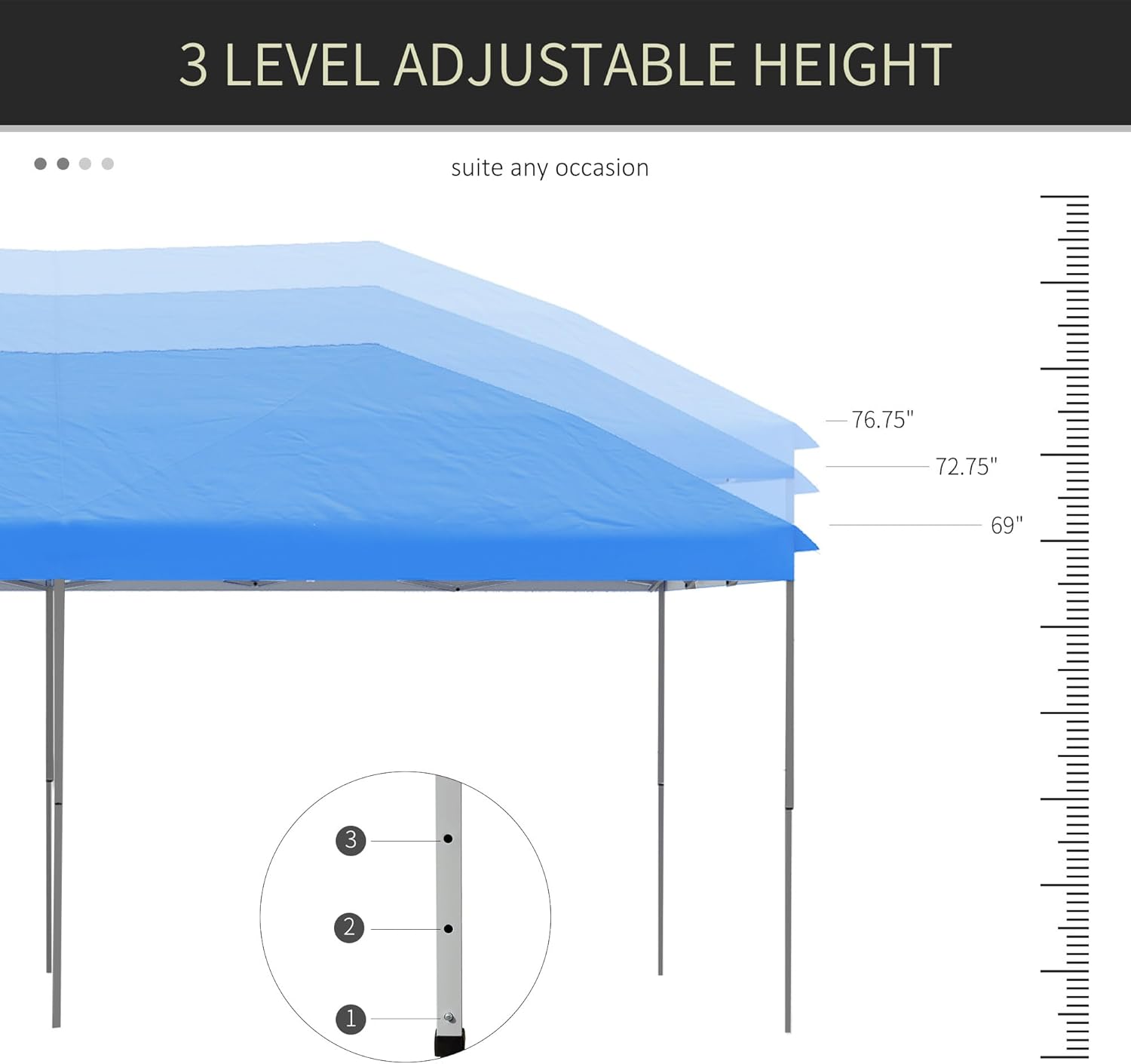 Outsunny 10′ x 20′ Pop Up Canopy Tent with Steel Frame, 3-Level Adjustable Height and Storage Bag, Instant Sun Shelter Event Tent for Patio Backyard and Garden, Blue