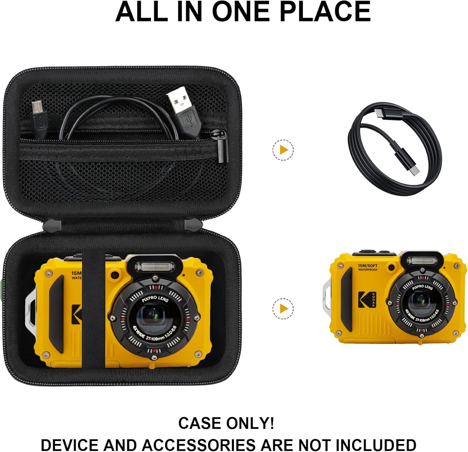 Hard Protective Case for Kodak PIXPRO WPZ2 Rugged Waterproof Digital Camera, Travel Case with Zipper Mesh Pocket for USB Cable, SD Card, Battery and Other Accessories, Black