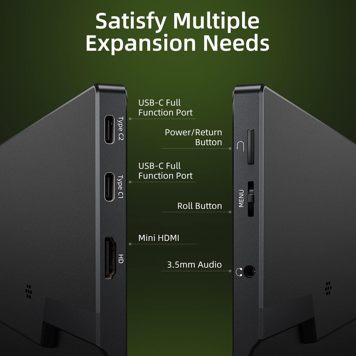 【What You Get】1* Portable Monitor;1* HDMI-Mini HDMI Cable;1* USB C-USB C Cable;2* USB A-USB C Cable;1* Leather Stand;1* Power Adapter;1* Manual;