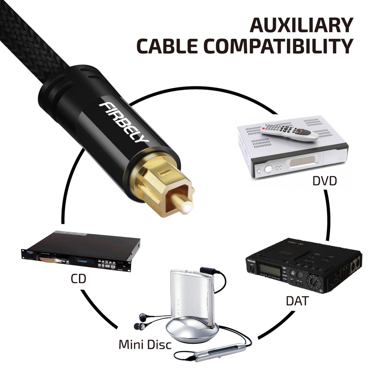 Optical Audio Cable Compatibility: Connects audio component such as: DVD, CD, Mini Disc, sound bar, DAT and other digital audio equipment for crystal clear, and premium sound experience