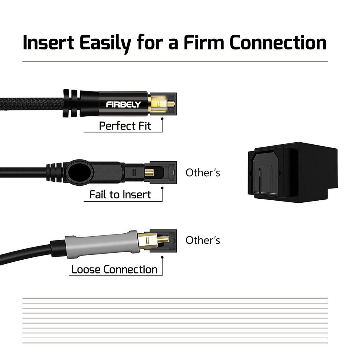 FIRBELY premium Optical Digital S/PDIF Toslink Audio cable allows you easily to connect your audio devices such as CD/DVD player, digital satellite and more to your home/audio theater system,