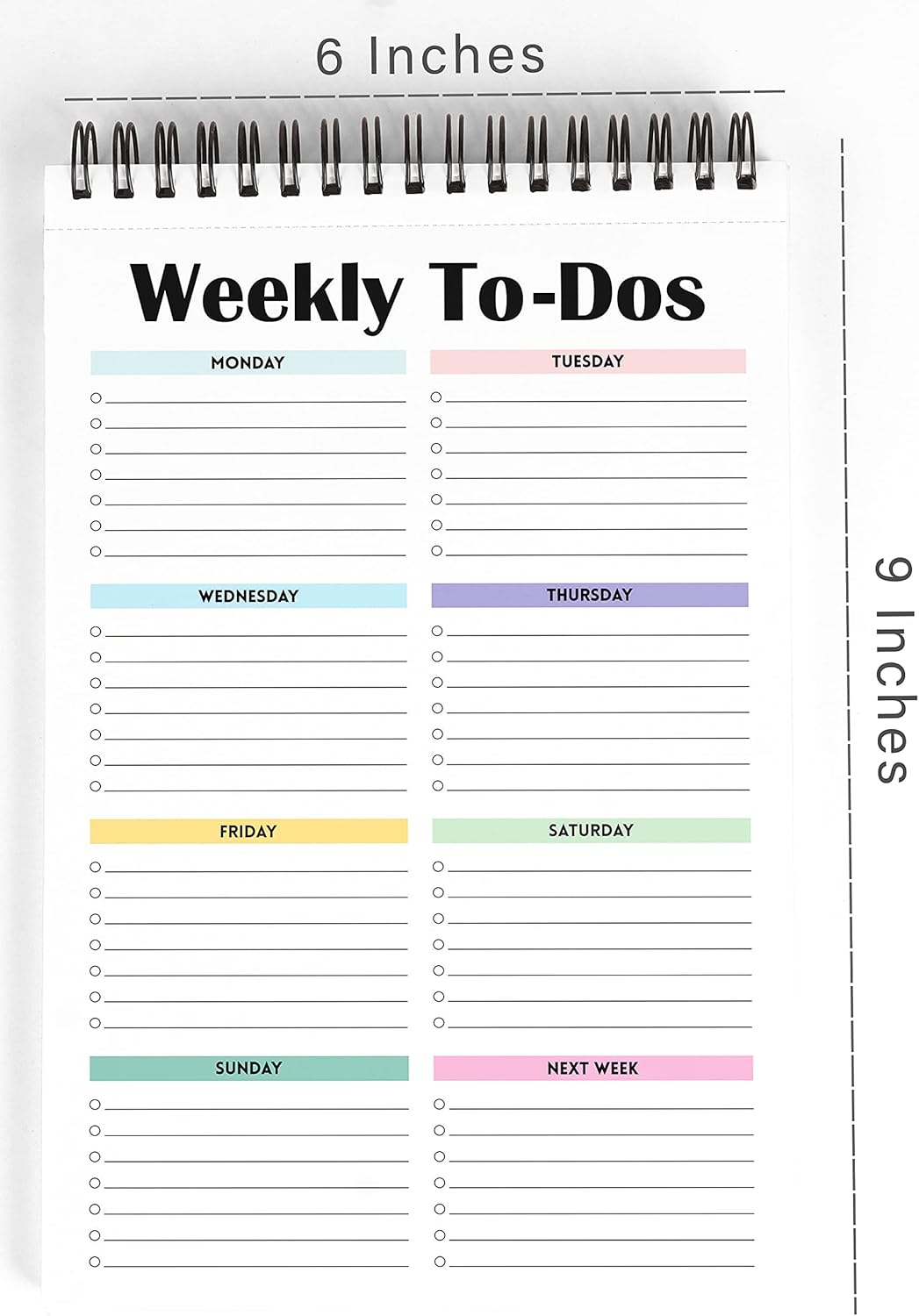 To Do List Notepad – 6” X 9” Paper Stationery, Simple Classic Weekly To Do Spiral Notepad Daily Checklist- Motivational Organizer Planner List Pad- Notepad Tear Off (50 Sheets)