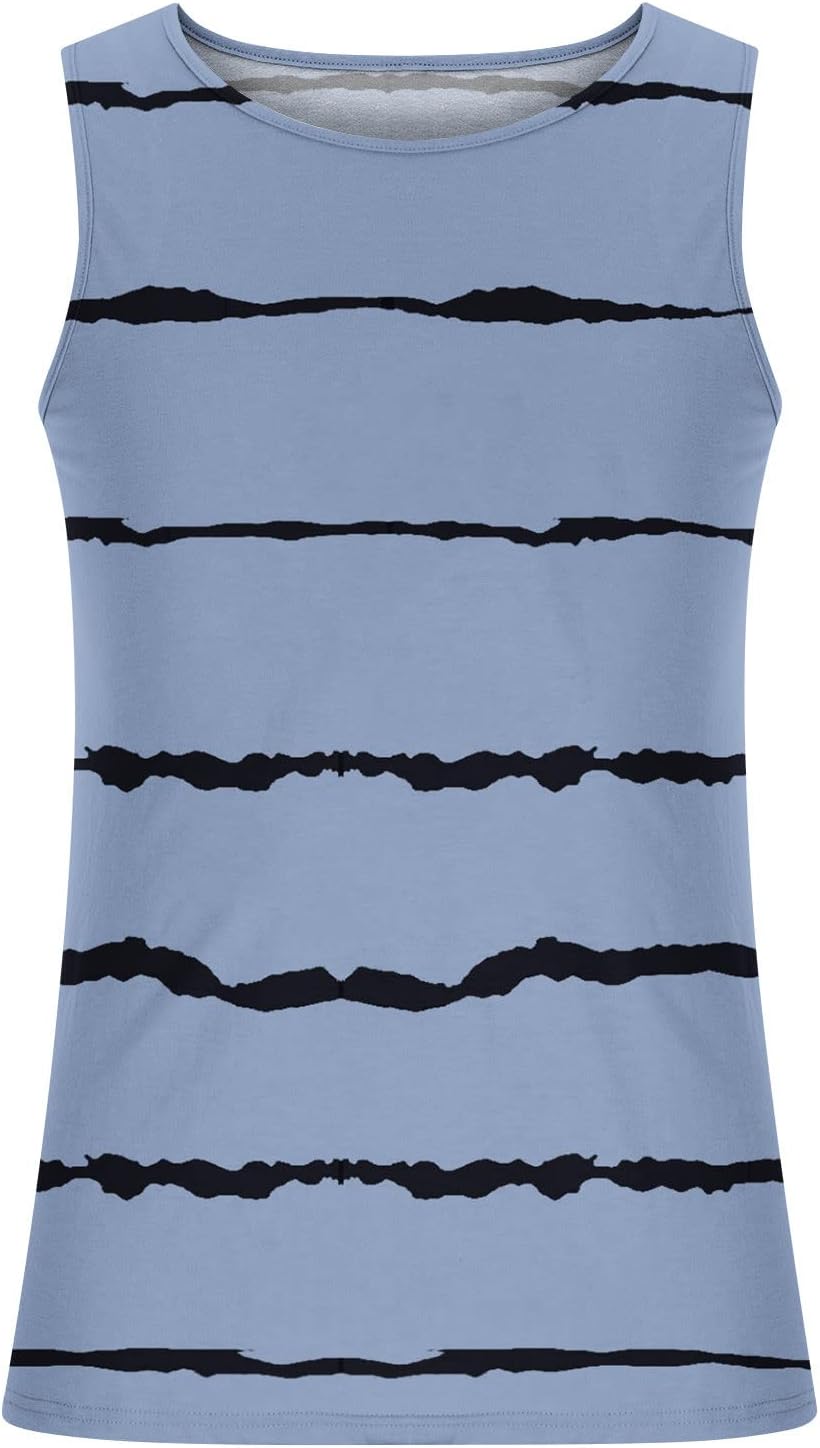 Men’s Striped Sleeveless Tops Stylish Round Neck Tank Top Quick Dry Sports Vest Athletic Gym Bodybuilding Fitness Tee