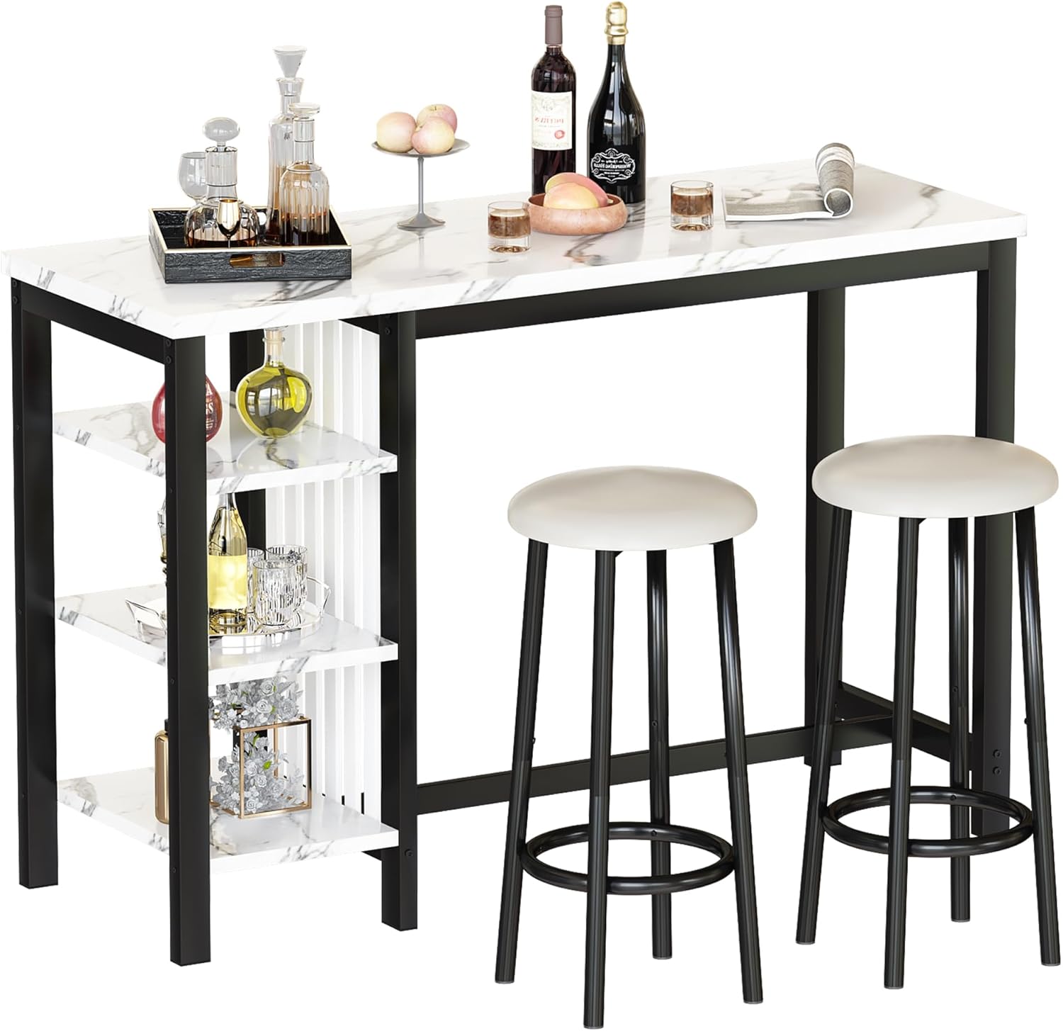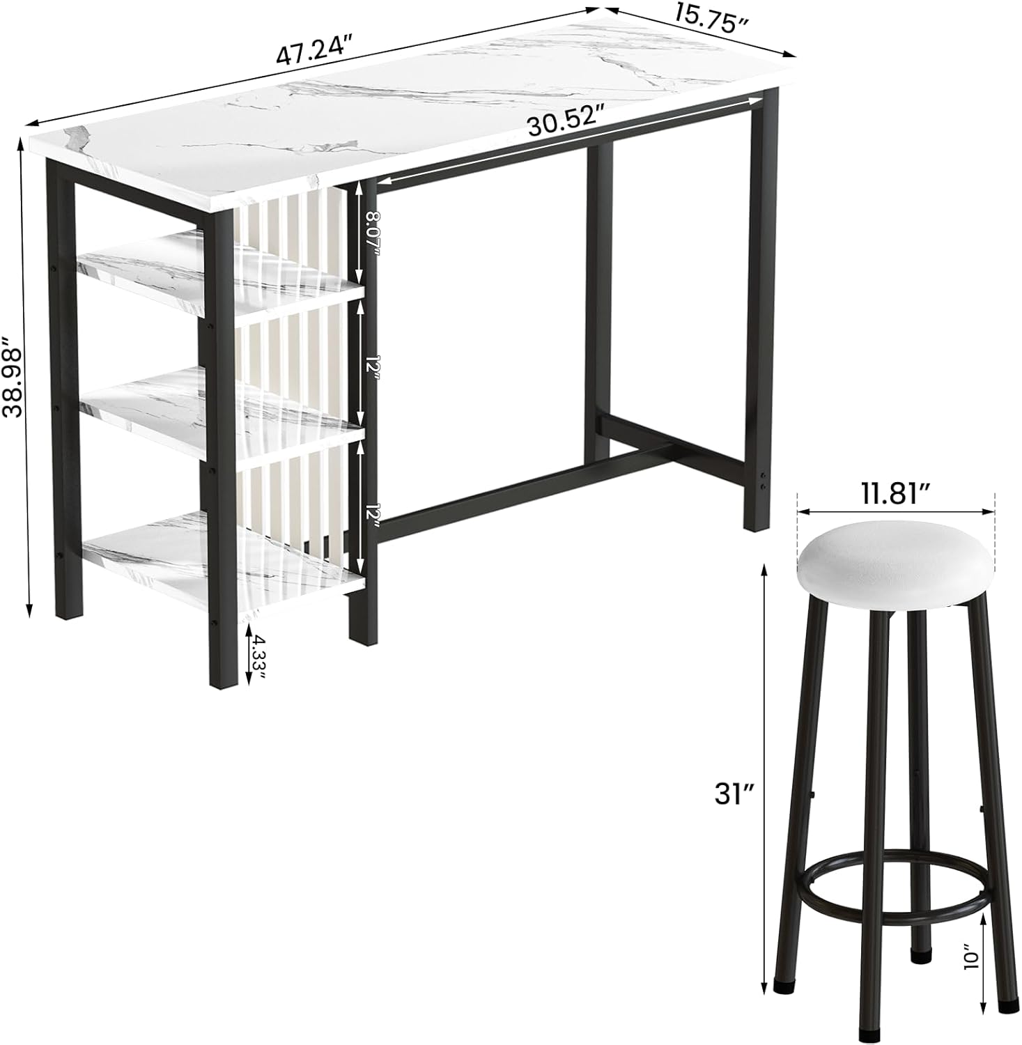 PERFECT STORAGE SPACE — This bar set not only has a spacious table top, but also a 3-tier open storage shelf on the side of the table, which will make your room more organized.