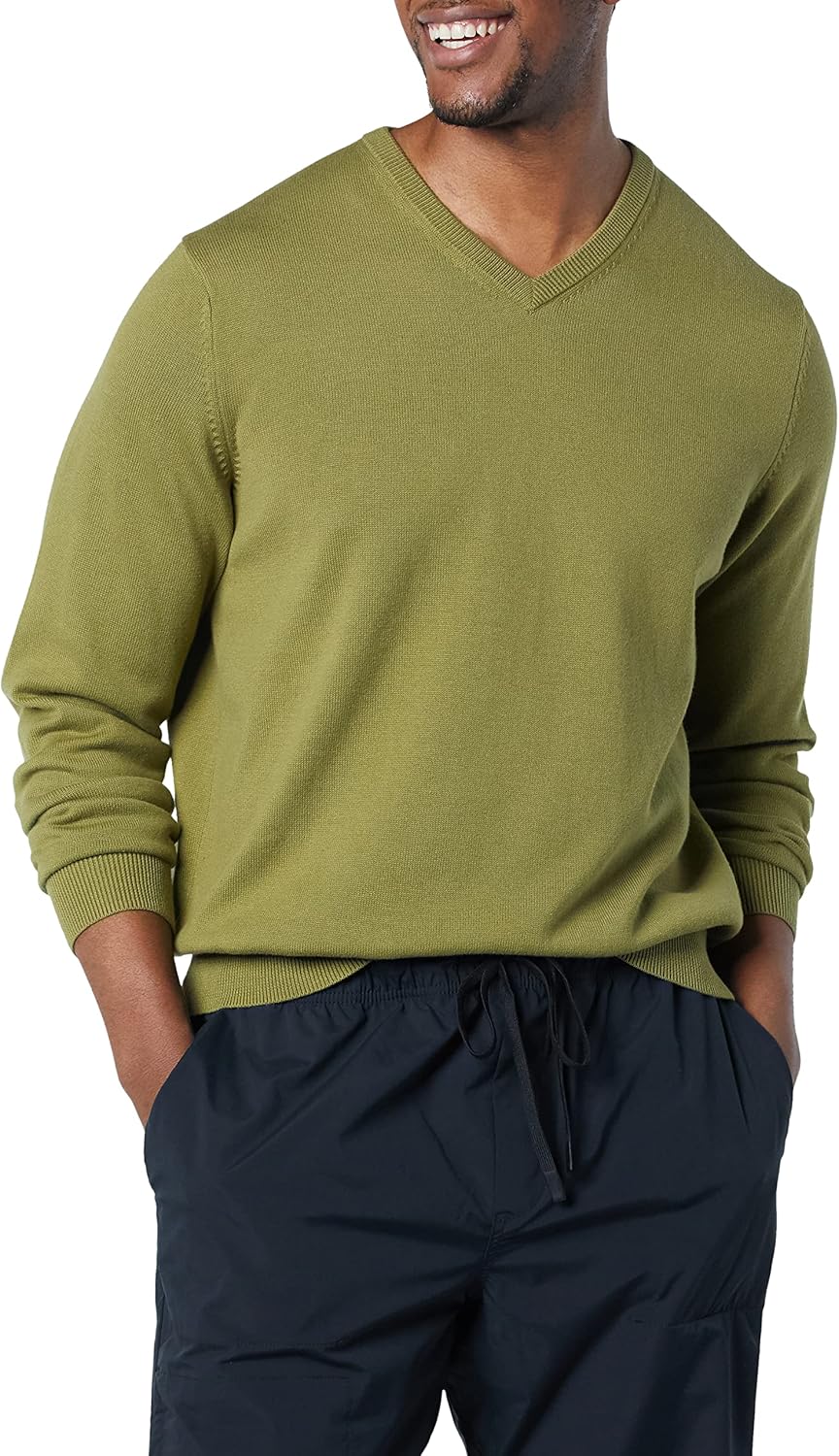 An Amazon Brand – This classic V-neck sweater features ribbing on the collar, hem, and cuffs to keep you warm