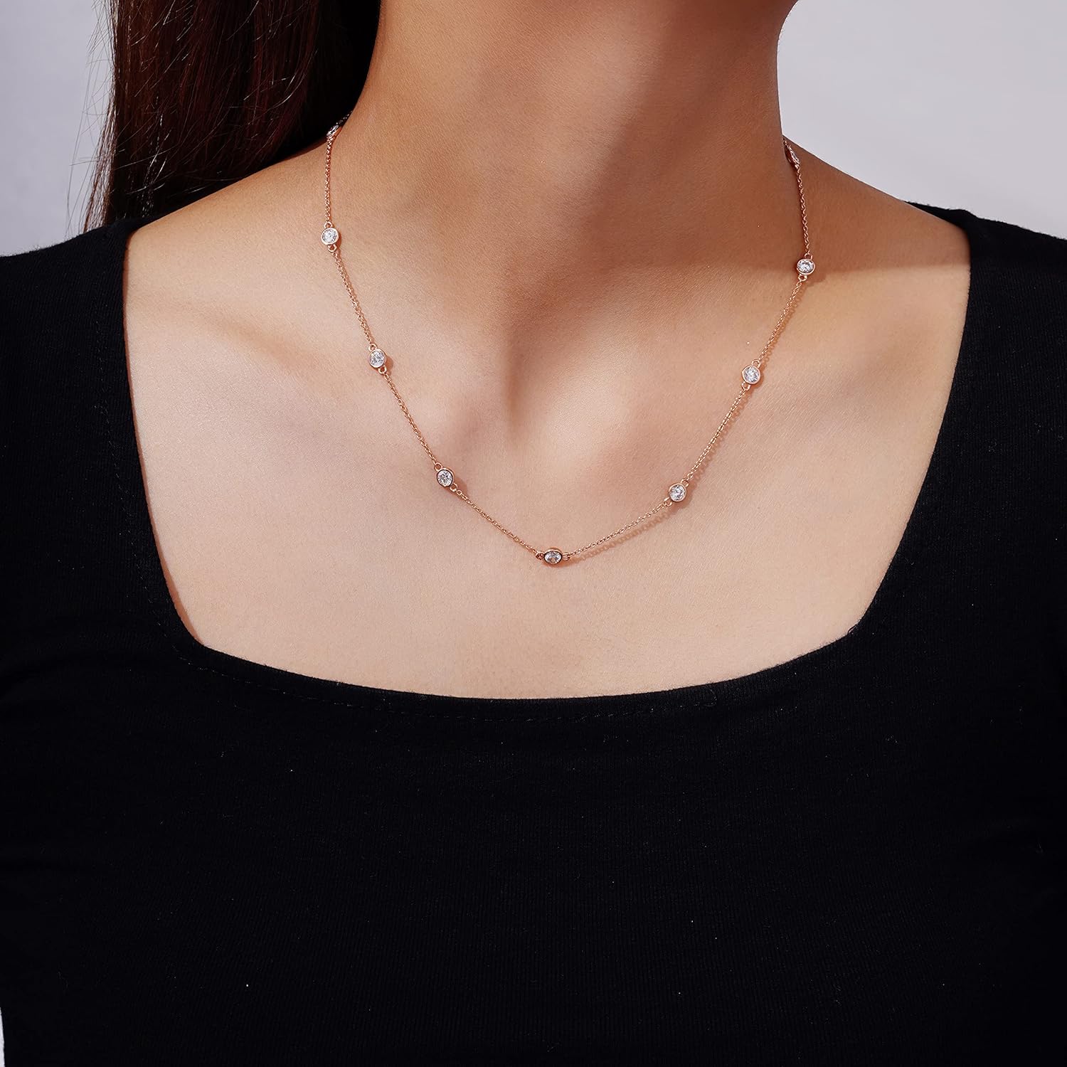 Amazon Essentials Platinum or Gold Plated Sterling Silver Station Necklace made with Infinite Elements Zirconia (previously Amazon Collection)