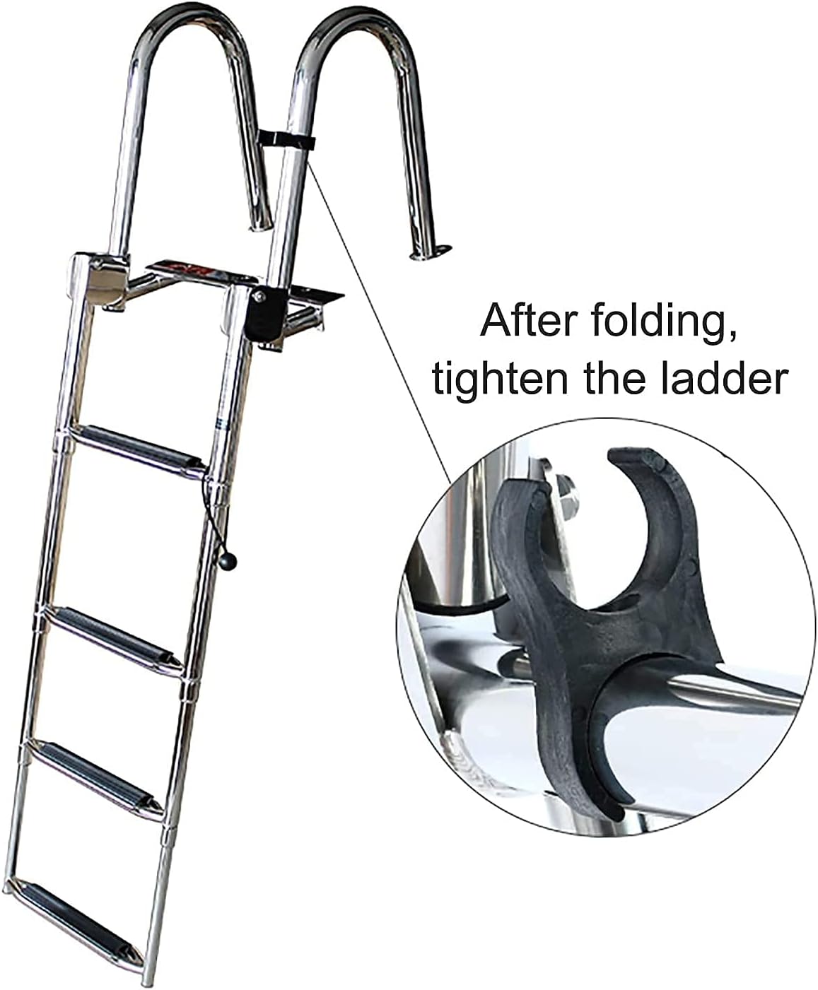 Swimming Ladder for Pool/Boat/Deck, 4-Step Folding Telescopic Ladder with Pedal Handrail, for Pontoon & Fishing Boat