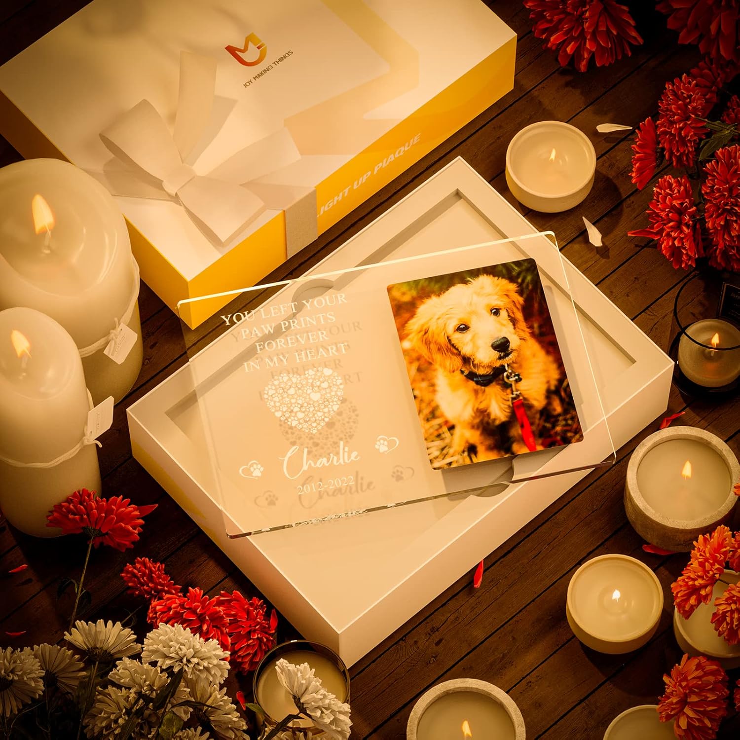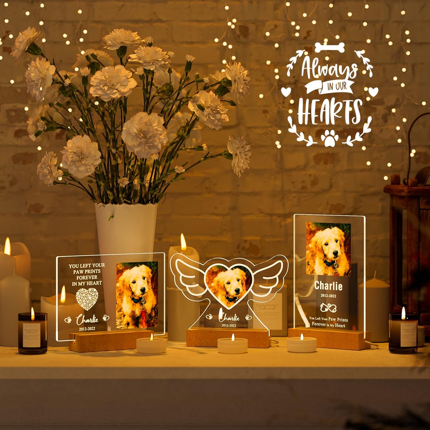 Bemaystar Personalized Pet Memorial Gifts Dog Memorial Gifts for Loss of Dog Pet Loss Gifts in Memory of Dog Night Lights Custom Dog Memorial Plaque Cat Memorial Photo Frame Pet Sympathy Gifts