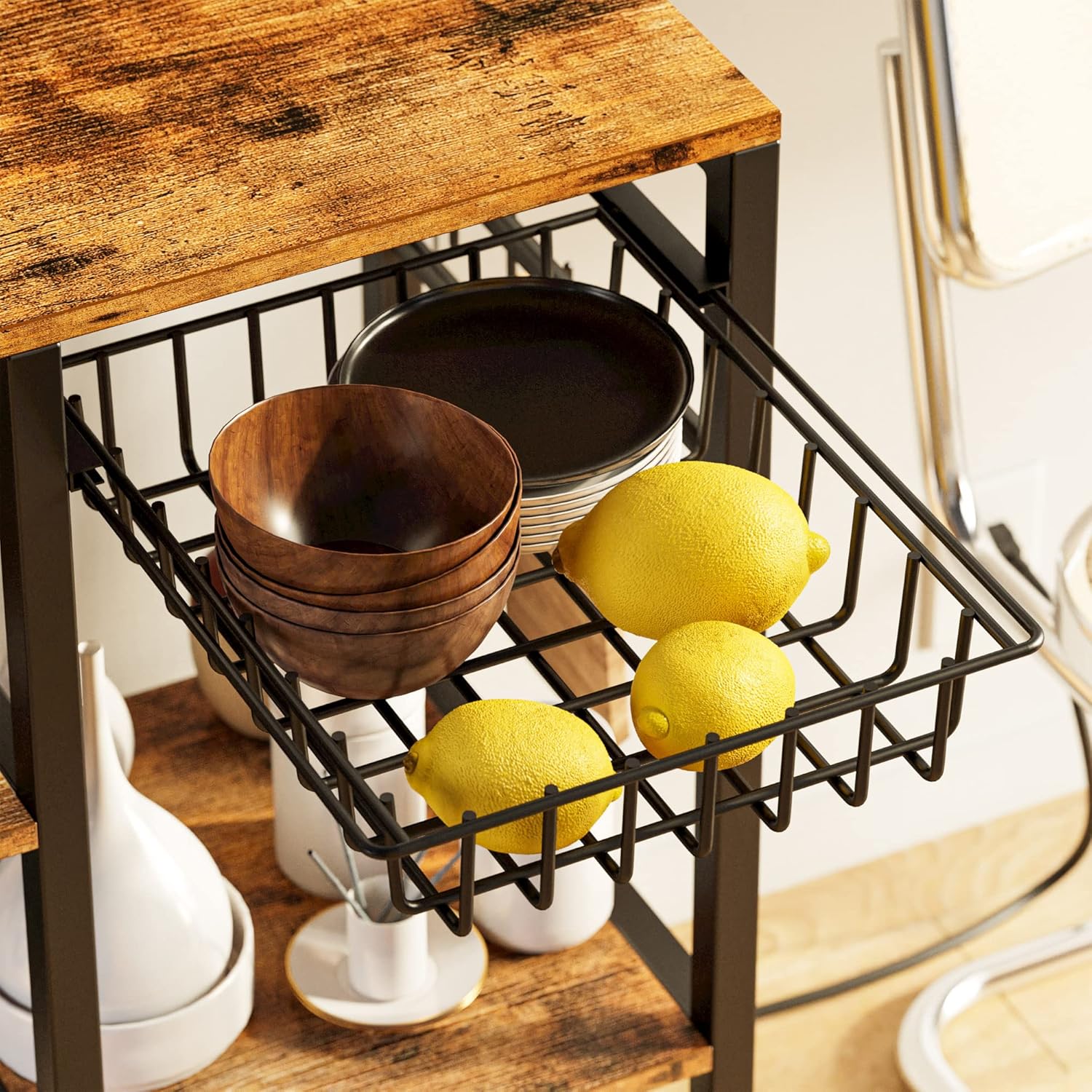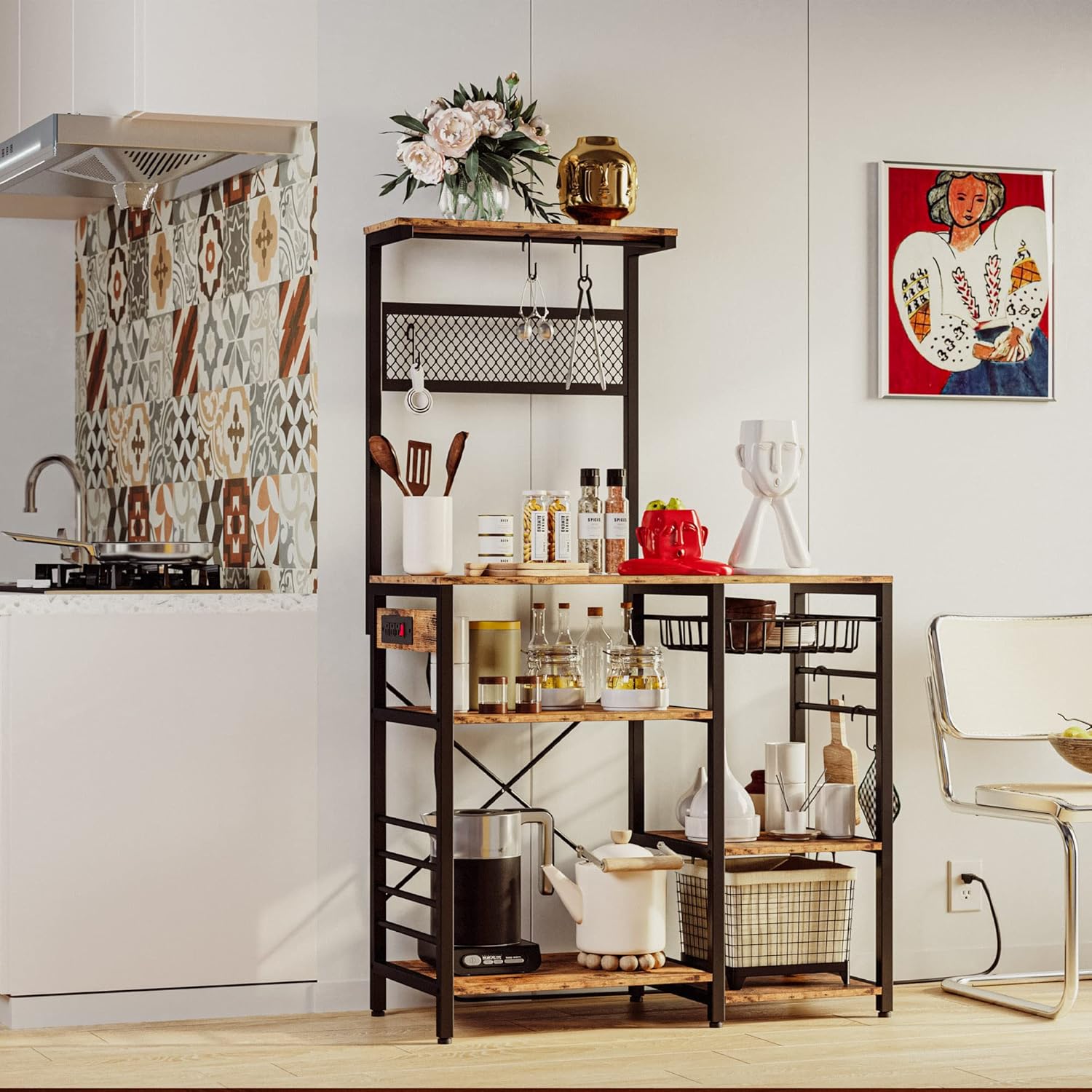IRONCK Bakers Rack, Microwave Stand with Power Outlet, Industrial Coffee Bar with Wire Drawer for Kitchen, Living Room Easy Assembly, Space-Saving, Vintage Brown