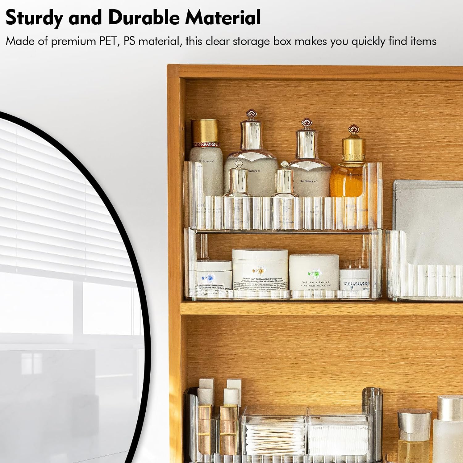 Sturdy Material – Made of premium PET, PS material, this clear storage box makes you quickly find items. And the 3.5″ width fits most mirror cabinets.