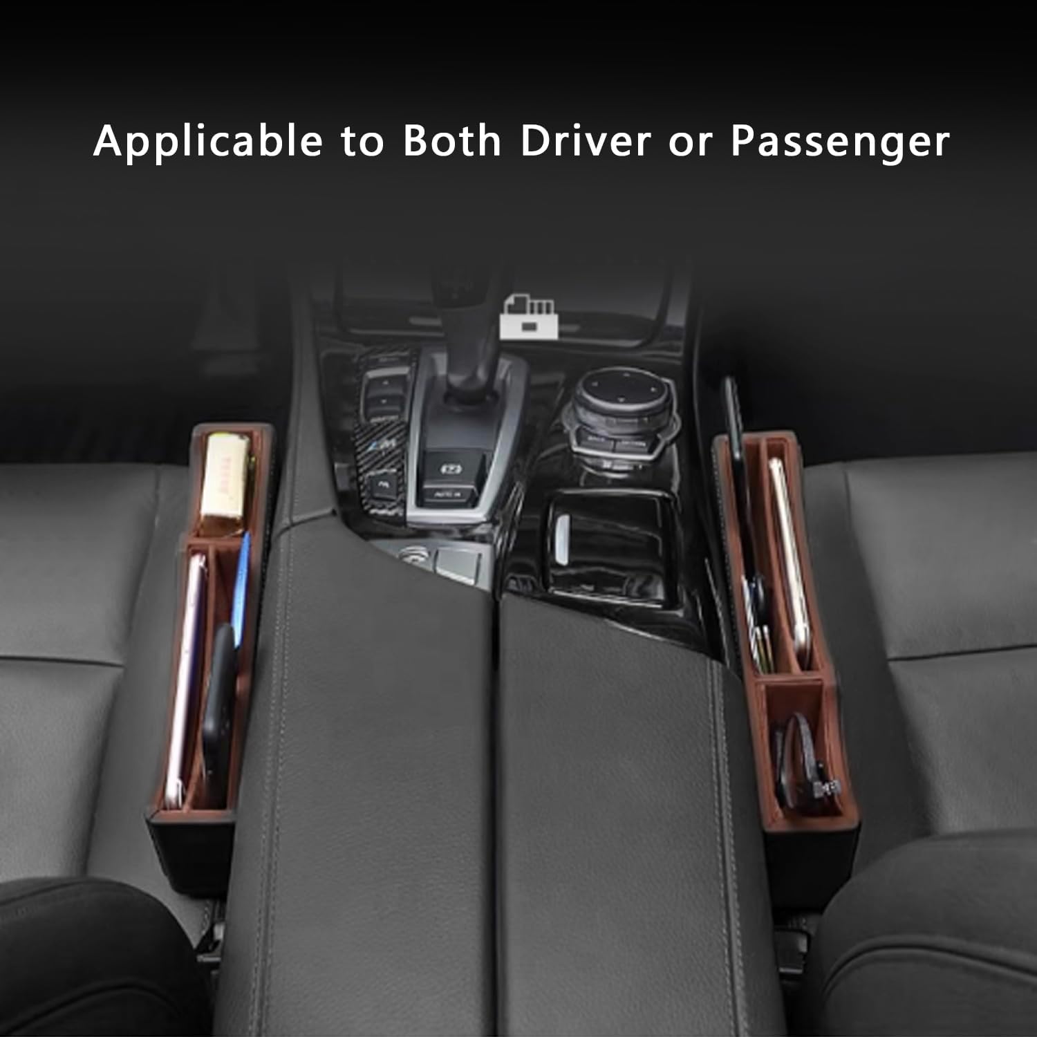 【Extra Storage for car】Car seat crevice storage box can storage your phone, wallet, credit, coin, cigarettes, charging cable, sunglasses, keys, etc. Prevent your small items from falling into narrow seat gaps.