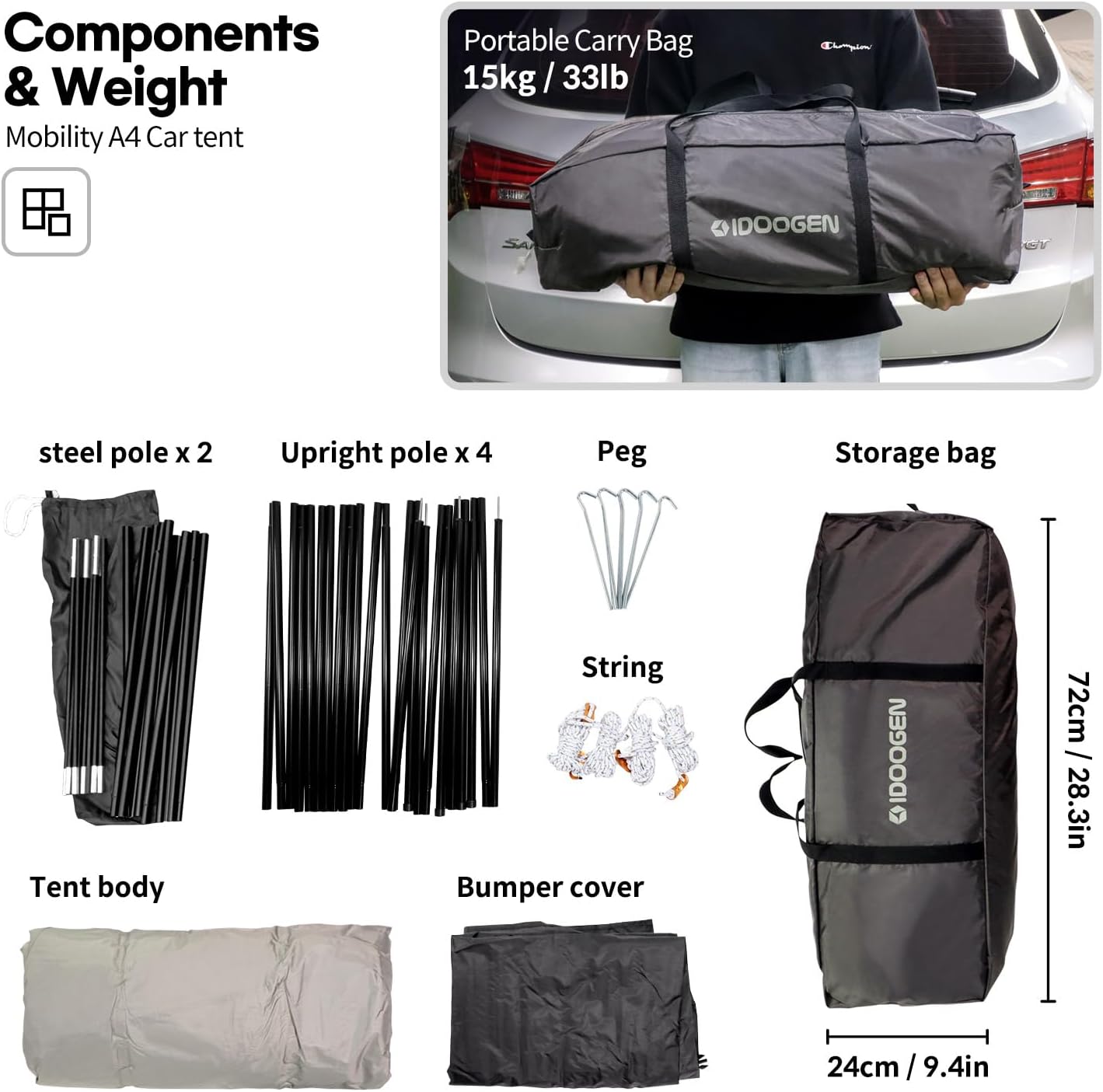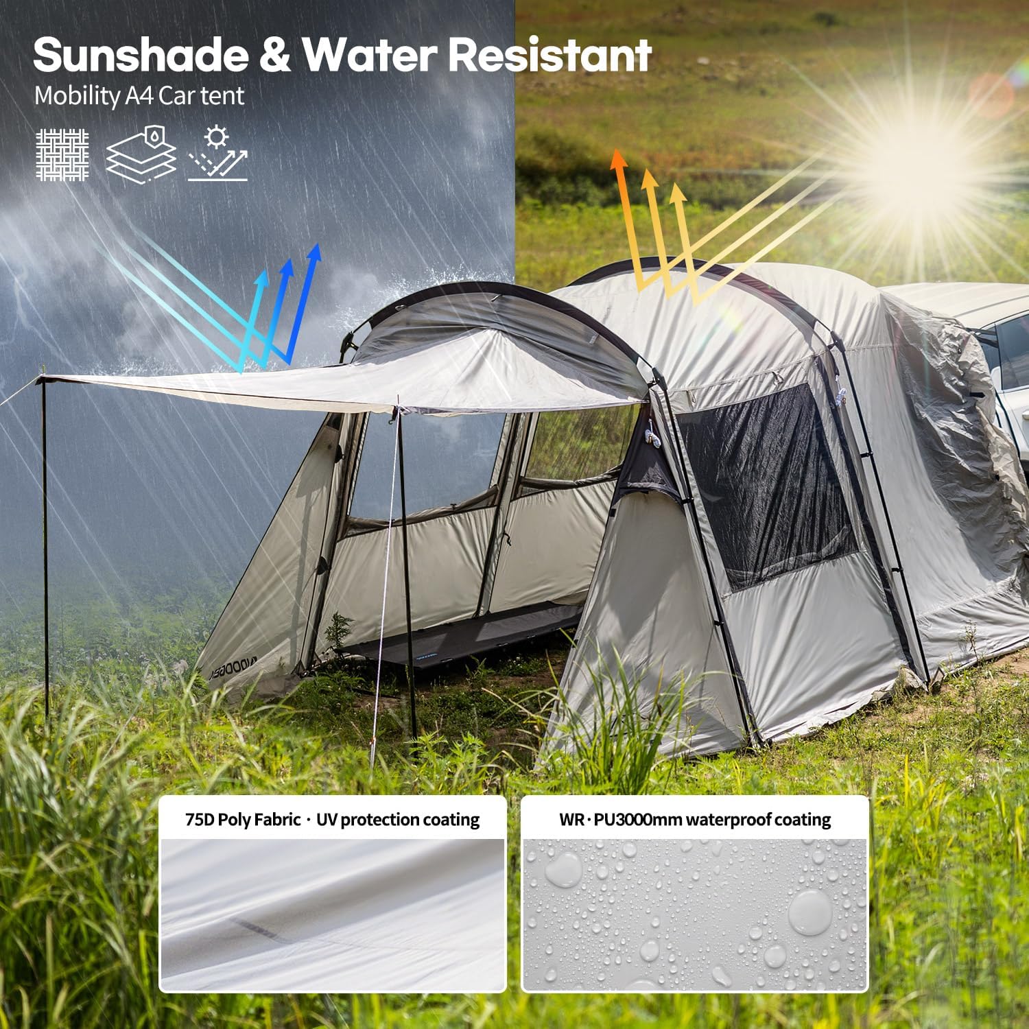 ☔【Complete Waterproof Design】The IDOOGEN SUV tailgate tent crafted from upgraded fabric with outstanding 3000mm PU/WR/UV and 450mm PU/WR/BR waterproof performance, our tent ensures reliable protection in diverse weather conditions.