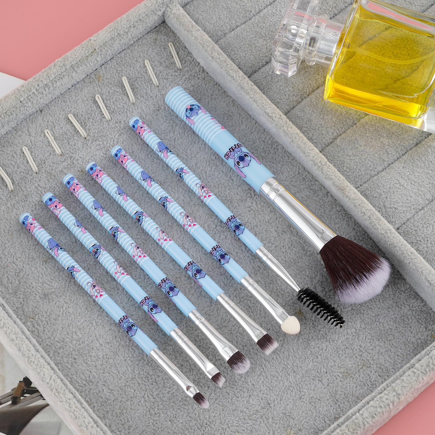 7 Pcs Stitch Makeup Brushes Set with Travel Cosmetic Bag Cartoon Cosmetic Eyelash Eyeshadow Brush for Girls (7 Pcs)